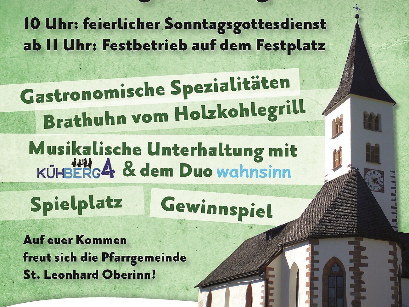 mit gastronomischen Spezialitäten, musikalischer Unterhaltung, Kinderspielplatz,... nach der hl. Messe am Dorfplatz in Oberinn ab 11 Uhr