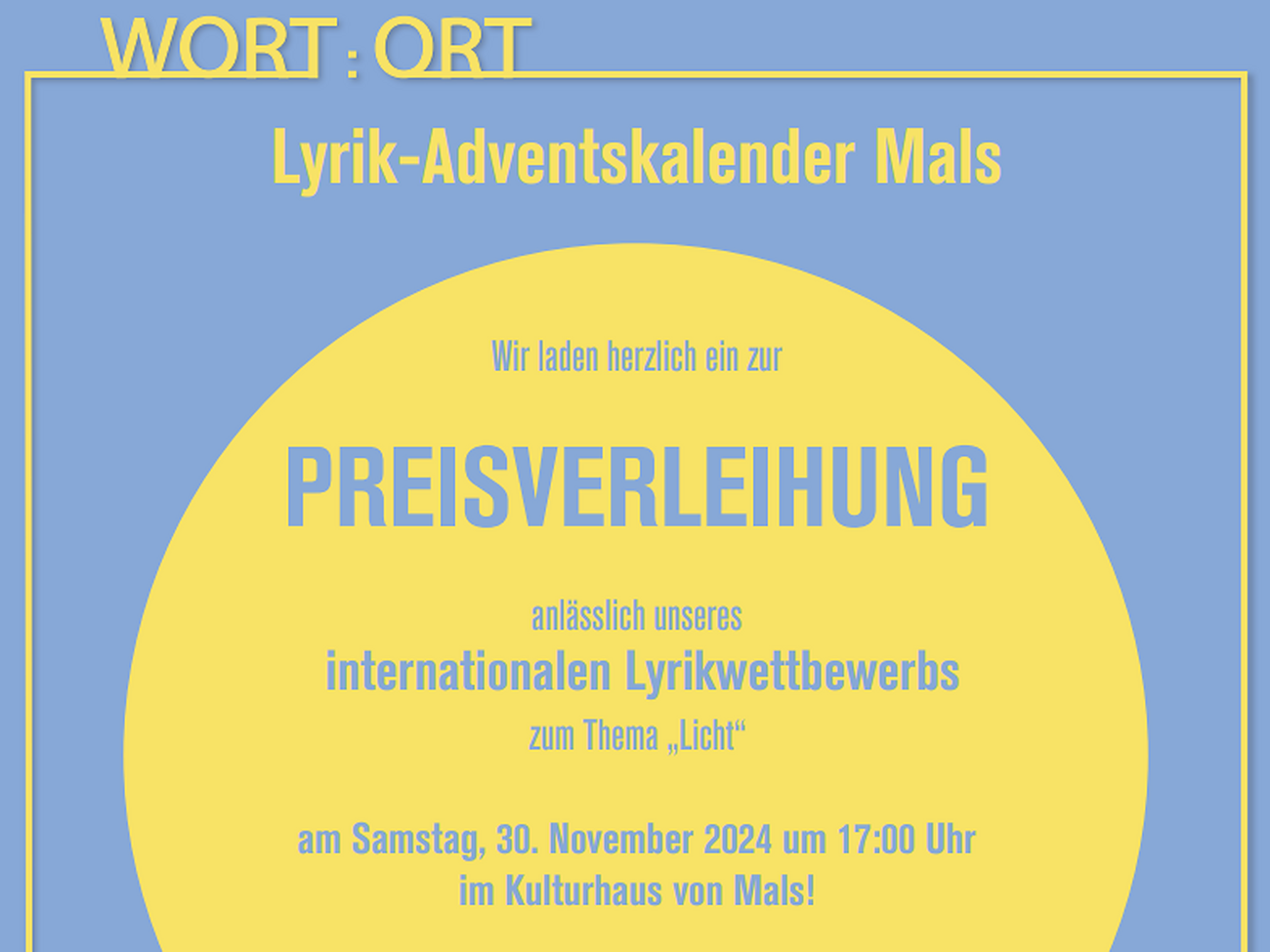 Die Preisverleihung findet am 30. November 2024 um 17:00 Uhr im Kulturhaus von Mals statt!