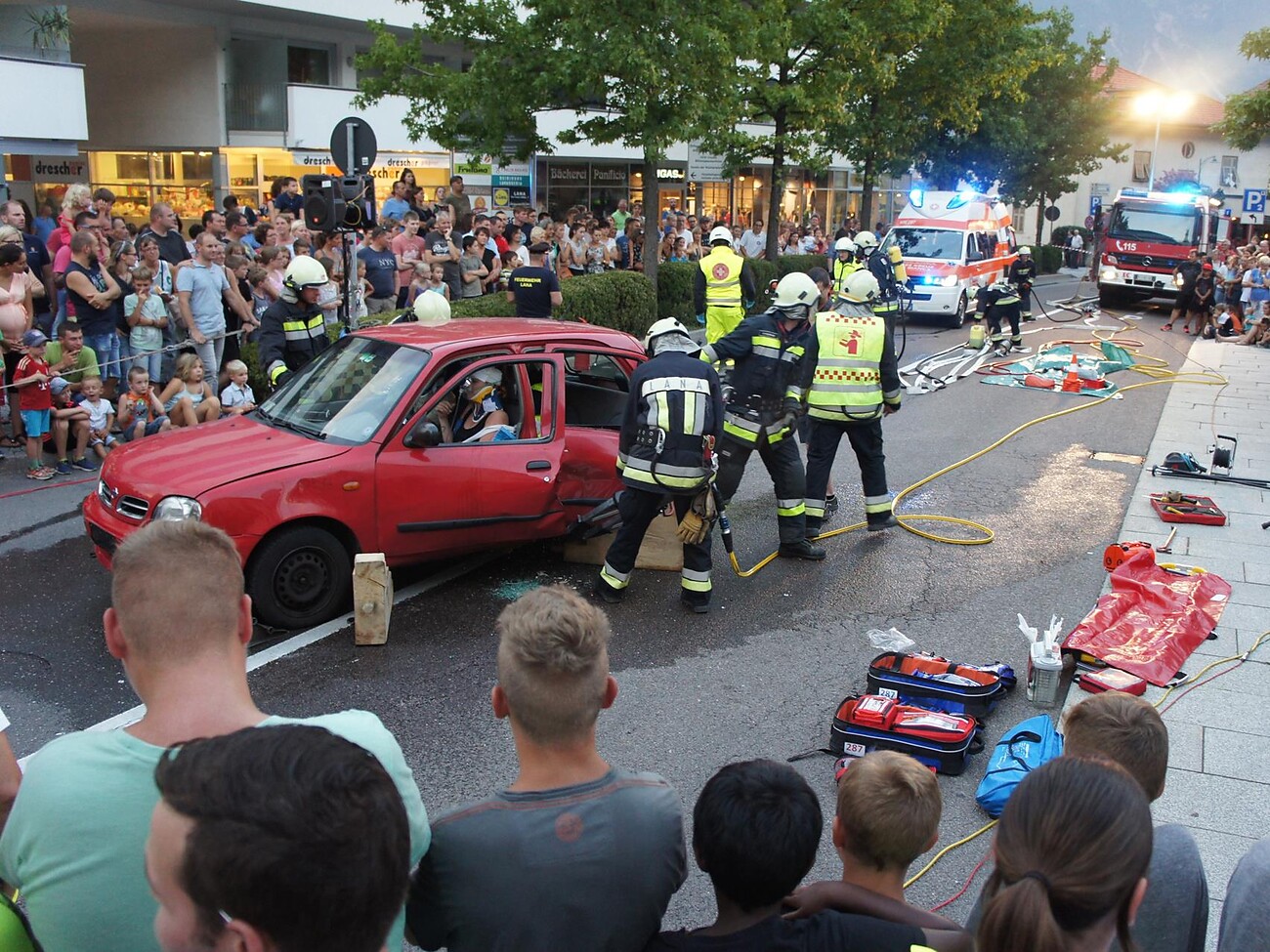 Thema: Rescue Night. Sie sind immer zur Stelle, wenn Hilfe benötigt wird... Vielen Dank allen Freiwilligen! Das Weiße Kreuz und die Freiwillige Feuerwehr präsentieren erneut eine spektakuläre Schauübung, Wasserrettung Meran und Bergrettung Lana stellen sich vor. Die Zivilschutzgruppe Lana ist dieses Jahr auch mit dabei.