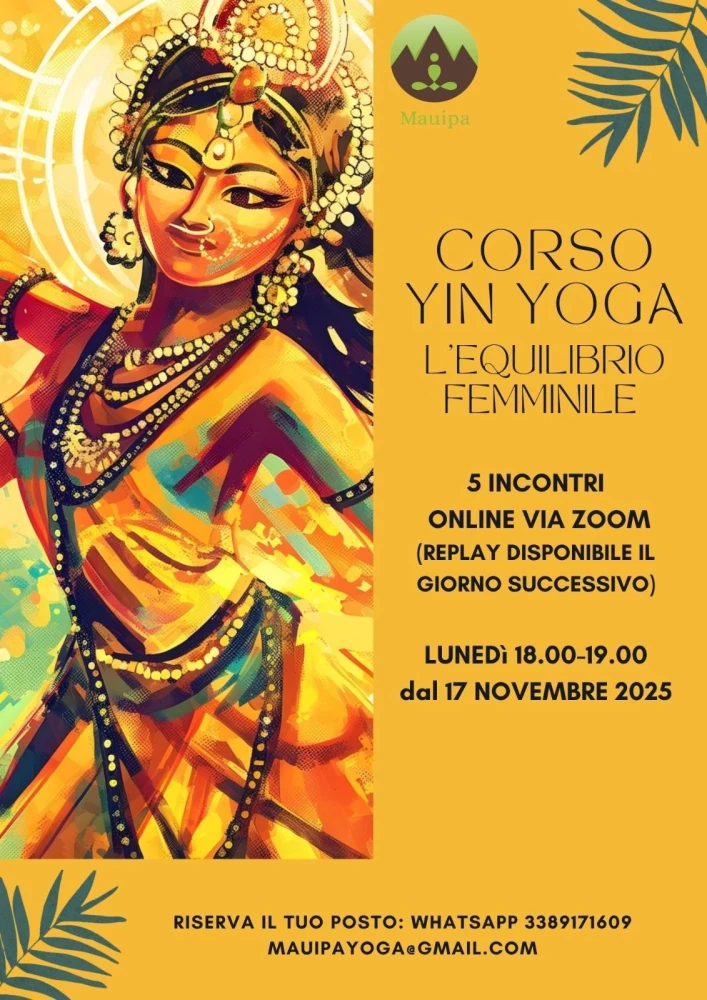 L'energia femminile che anima tutta la vita è conosciuta nel mondo dello yoga, come Shakti. Si dice che sia l'energia della creazione e della distruzione, e questa energia nel corpo femminile può essere nutriente ma, come sappiamo, anche caotica e dirompente, soprattutto nei cicli di passaggio nella vita della donna. Questo percorso online di 5 settimane di Yin Yoga è disegnato per riportare equilibrio energetico, ormonale ed emotivo, in modo che mente e corpo possano fluire in armonia. Le tecniche di respiro proposte creano equilibrio nel nostro sistema nervoso, riducendo i livelli nocivi di cortisolo e noradrenalina e le dolci posizioni tenute a lungo, agendo sui meridiani energetici associati agli organi endocrini (ipofisi, tiroide, ovaie etc...) ripristinano naturalmente la produzione ormonale (sia tra i cicli mensili, sia dopo la gravidanza e nel passaggio alla menopausa), rilassano le tensioni emotive e rinforzano il sistema immunitario.Onoreremo insieme tutti gli aspetti del sacro femminile come chiave per una vita di benessere ed equilibrio psicofisico, rallentando e coltivare ciò che è importante per noi. Date: 17-24 novembre - 1-15-22 dicembre Orario: lunedì 18.00-19.00 Online: in diretta via zoomReplay della lezione sempre disponibile in caso di assenza. Iscrizioni via WhatsApp al 338 917 1609 posti limitati!