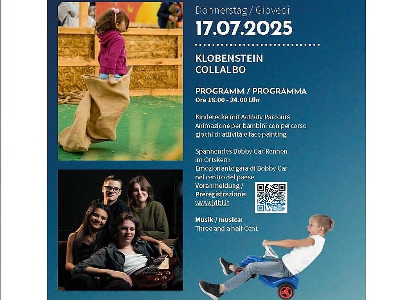 Ein Sommerabend rund ums Thema Familien mit Musik, kulinarischen Genussmomenten, spannendem Bobby Car Rennen und einem vielfältigen Rahmenprogramm im Dorfzentrum von Klobenstein.