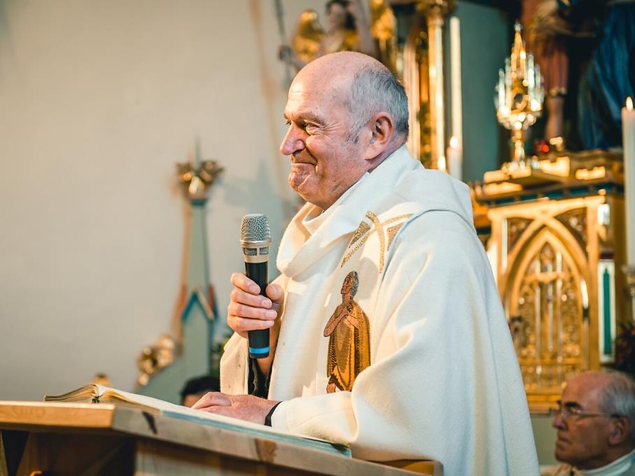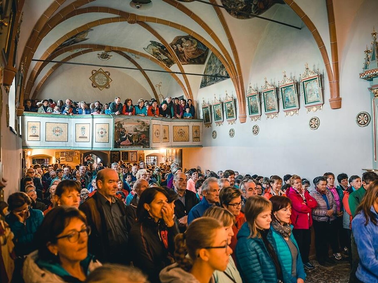 Moment der Besinnung und des Gebets während der Anbetungsstunde im Wallfahrtsort La Crusc.