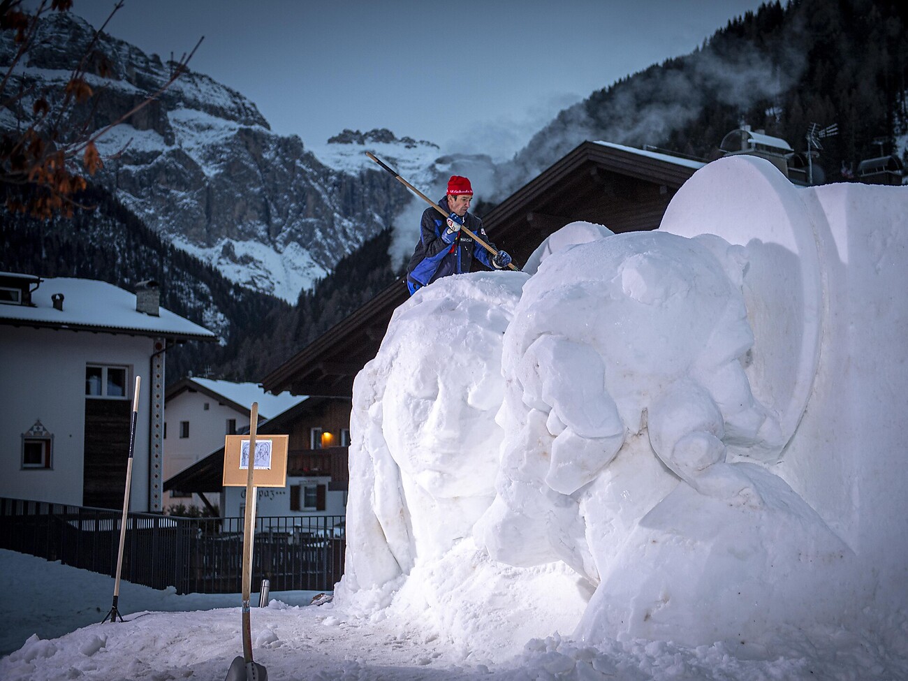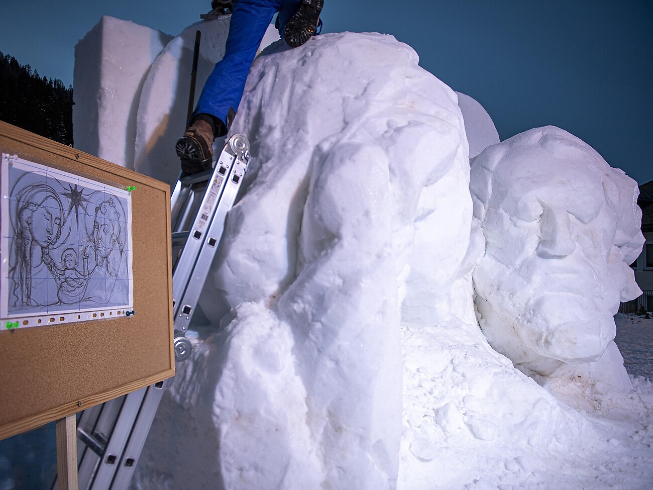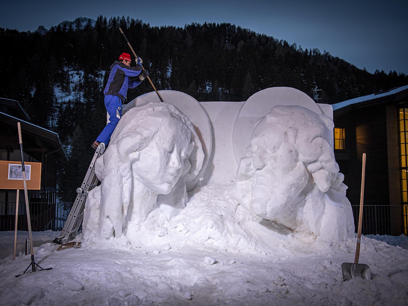 Sie wurde von den Künstlern Ivo und seinem Sohn Damian Piazza in vier Tagen, vom 6. bis 9. Dezember, vollständig aus Schnee geschnitzt.