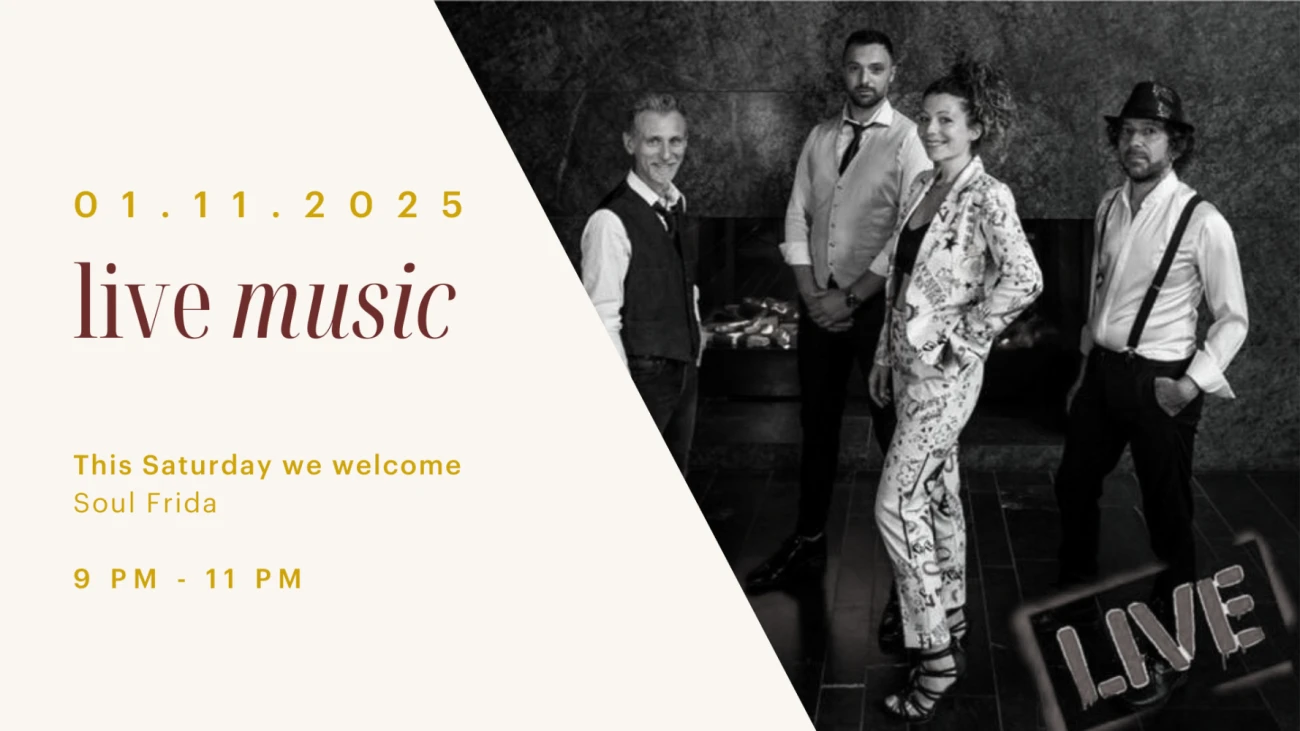 Veranstalter: Palm LoungeSOUL FRIDA ist eine Band, die ein elegantes Repertoire mit modernen und fesselnden Klängen bietet. Das Repertoire reicht von Soul über Funk bis hin zu Dance, wobei die Hits der besten Künstler der internationalen R&B-Szene neu präsentiert werden. Die Band aus Meran ist bekannt für ihre Teilnahme an verschiedenen nationalen Musikwettbewerben bis hin zum Finale von Sanremo Rock 2018 und für ihre Aufnahmearbeiten im Jahr 2019 mit der Veröffentlichung der CD „Pink Frida“. Ab 2022 stößt die Sängerin Chiara Leone mit einem zeitgenössischen Soul-R&B-Tanzrepertoire zu dem Projekt.