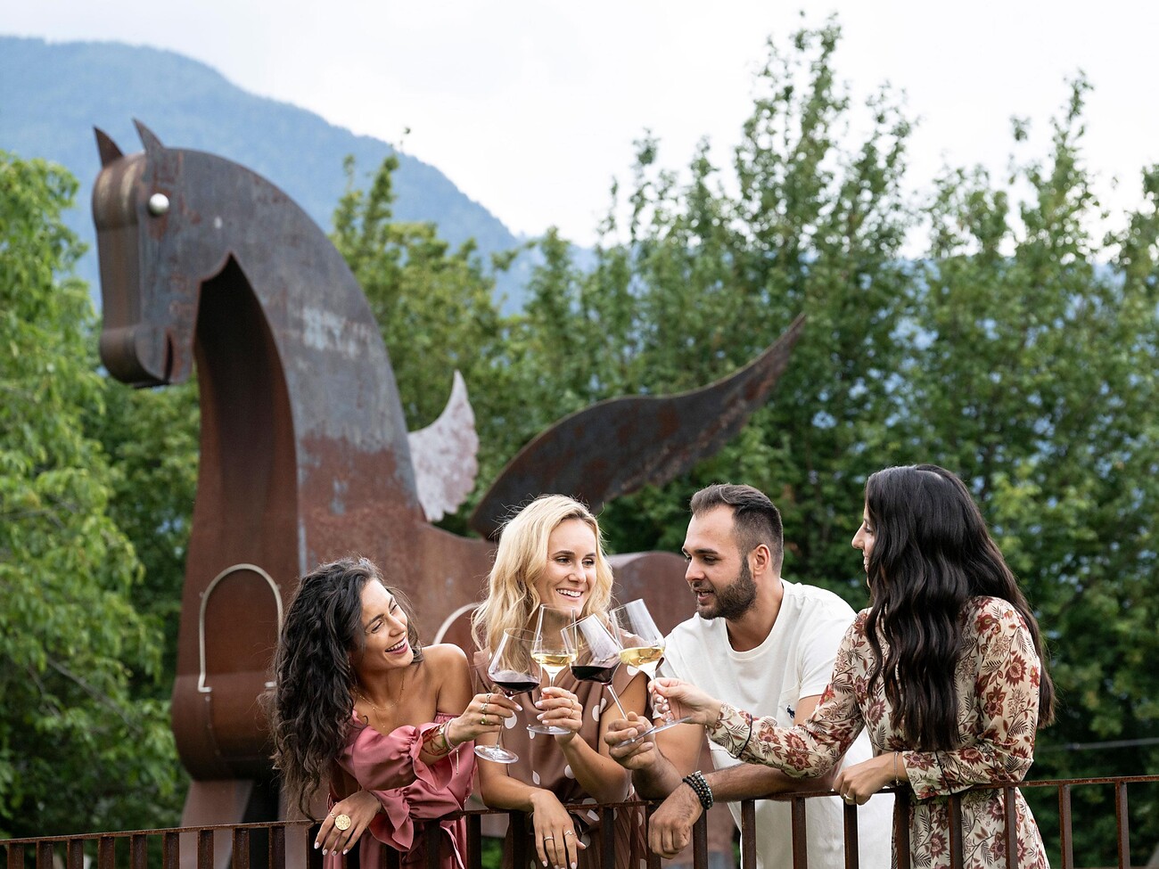 Verschiedenste Weine aus dem Burggrafenamt & lokales Bier führen durch den Abend - Bazement Acoustic sorgt mit lässigem Sound für sommerliche Leichtigkeit und den passenden Rhythmus zum Anstoßen.