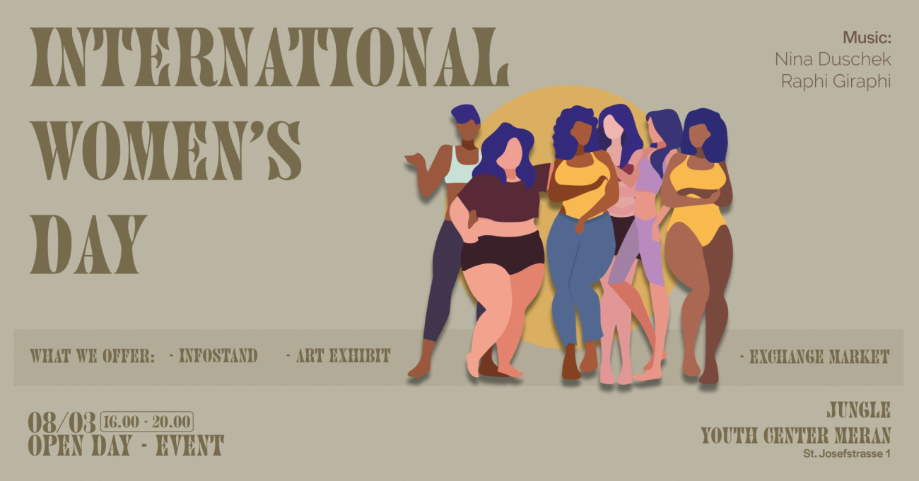 Im Rahmen des internationalen Frauentags am 08.03.2023 organisiert das Jugendzentrum Jungle zum ersten Mal die Veranstaltung “Tag der Frau – Open Day”, um das Thema “Junges Frausein in der heutigen Gesellschaft” zu thematisieren und zu reflektieren.
