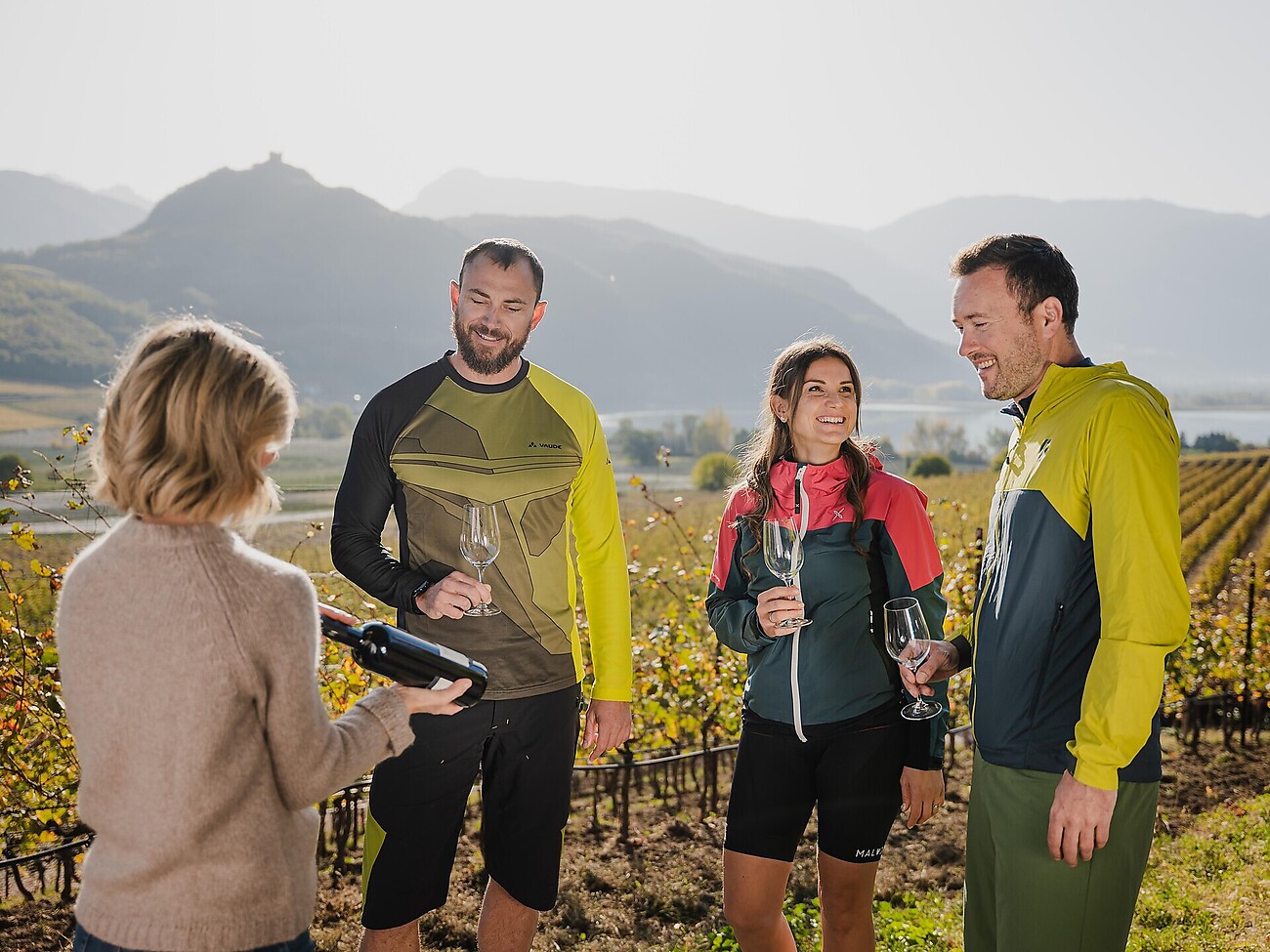Durch Apfel- und Weinanlagen fahren wir durch die kleinen Dörfer Nals und Andrian durch und nehmen anschließend den Anstieg nach Missian, dem bekannten Burgendorf in Angriff. Dort entscheidne wir uns für Boymont oder die Burg Hocheppan. Anschließend fahren wir auf der Weinstraßen. Am Ende der Tour werden wir in einer typischen Kellerei unser „Glasl Wein“ genießen.