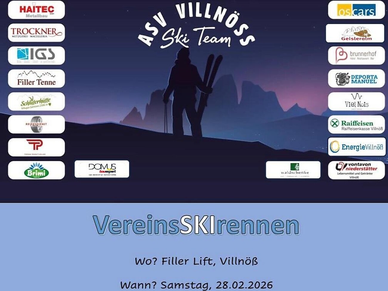 Anmeldung bis spätestens 26.02.26 18.00 Uhr unter ski.teamvillnoess@gmail.com