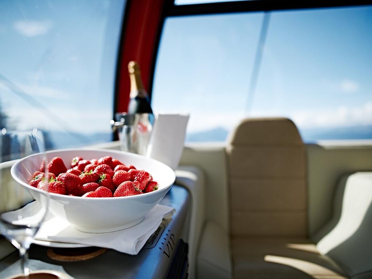 Mache es dir in der bequem ausgestatteten VIP Gondel gemütlich und genieße das traumhafte Panorama und die umliegende Bergwelt. Champagner und Häppchen, liebevoll zubereitet vom Josef Mountain Resort, verwöhnen den Gaumen und machen die Zeit zu Zweit oder mit Freunden perfekt.