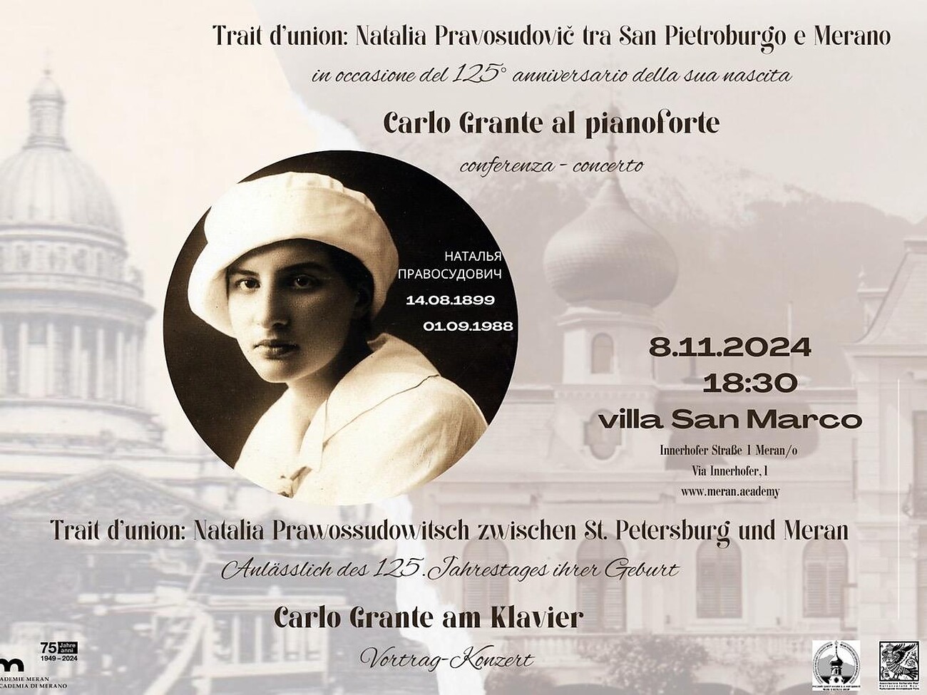 Trait d'Union: Natalia Prawossudowitsch zwischen St. Petersburg und Meran anlässlich des 125. Jahrestages ihrer Geburt.