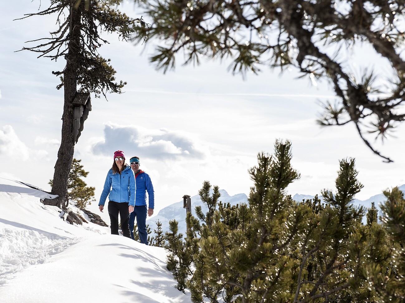 Von Planac aus führt ein ruhiger Weg durch den Wald zu einem herrlichen Aussichtspunkt. Von hier oben genießt du einen beeindruckenden 360°-Panoramablick auf die Winterlandschaft, die sich in strahlendem Weiß präsentiert. Nach einer wohlverdienten Pause in der Incisa Lodge Hütte führt der Rundweg sanft bergab zurück bis Corvara.
