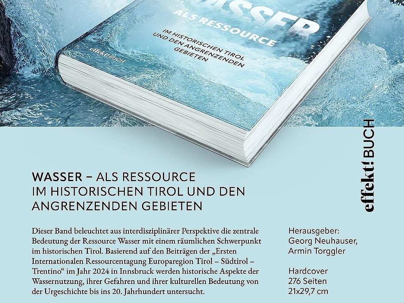 Wasser ist Lebensgrundlage, Energiequelle und Kulturgut. Gleichzeitig kann es Risiko, Konfliktstoff und Herausforderung sein. Wie Menschen im Tiroler Raum über Jahrhunderte mit dieser zentralen Ressource umgegangen sind, zeigt der neu erschienene wissenschaftliche Sammelband „WASSER als Ressource im historischen Tirol und den angrenzenden Gebieten“. Herausgegeben wurde die Publikation vom Historiker und Universitätsdozent Georg Neuhauser und Armin Torggler vom Südtiroler Landesmuseum Bergbau. Der Band vereint Beiträge der Ersten Internationalen Ressourcentagung der Europaregion Tirol, Südtirol und Trentino im Jahr 2024.