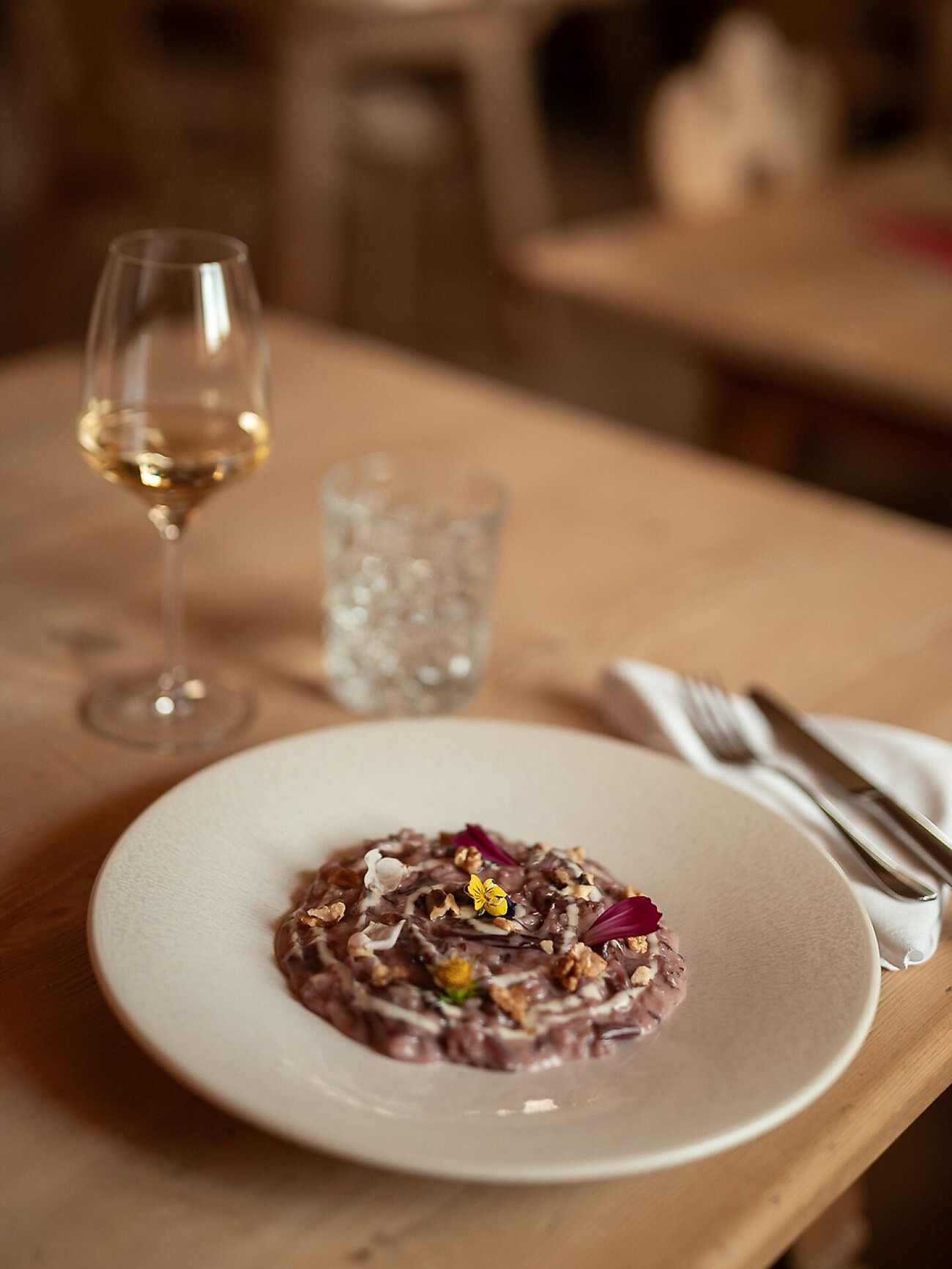 Mit viel Kreativität und Liebe zur Region entstehen Gerichte, die Tradition und feine Küche verbinden. Verarbeitet werden frische, saisonale Kräuter – gesammelt rund um das Vigiljoch – sowie hausgemachte Sirupe und Säfte wie Schafgarbensirup, Fichtensprossen- und Zirmsirup oder Löwenzahnsirup.