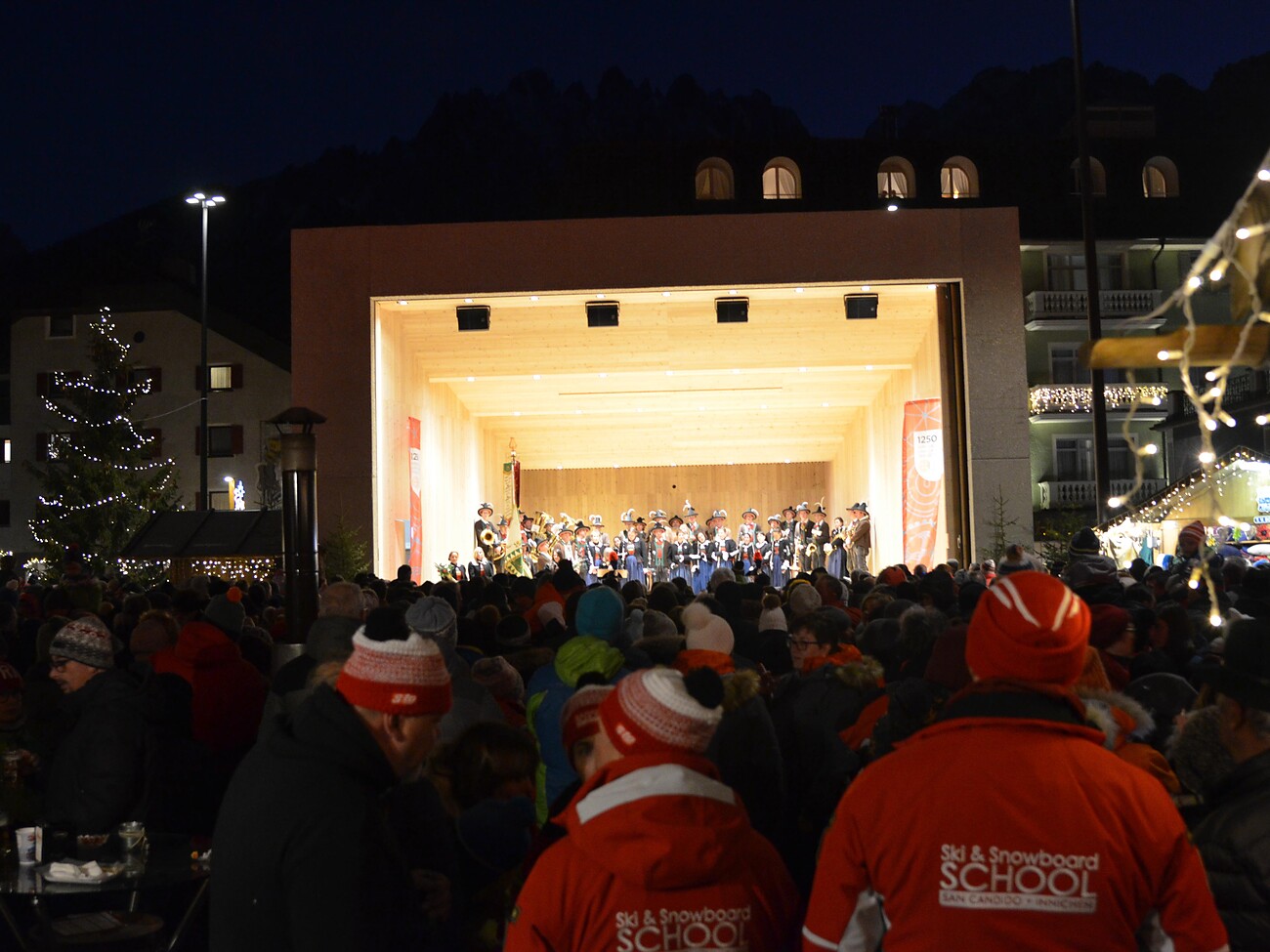 18.30 Uhr: Einmarsch der Musikkapelle Innichen, der Skilehrer und der Sportler des Wintersportvereins Innichen vom Franziskanerkloster zum Pflegplatz