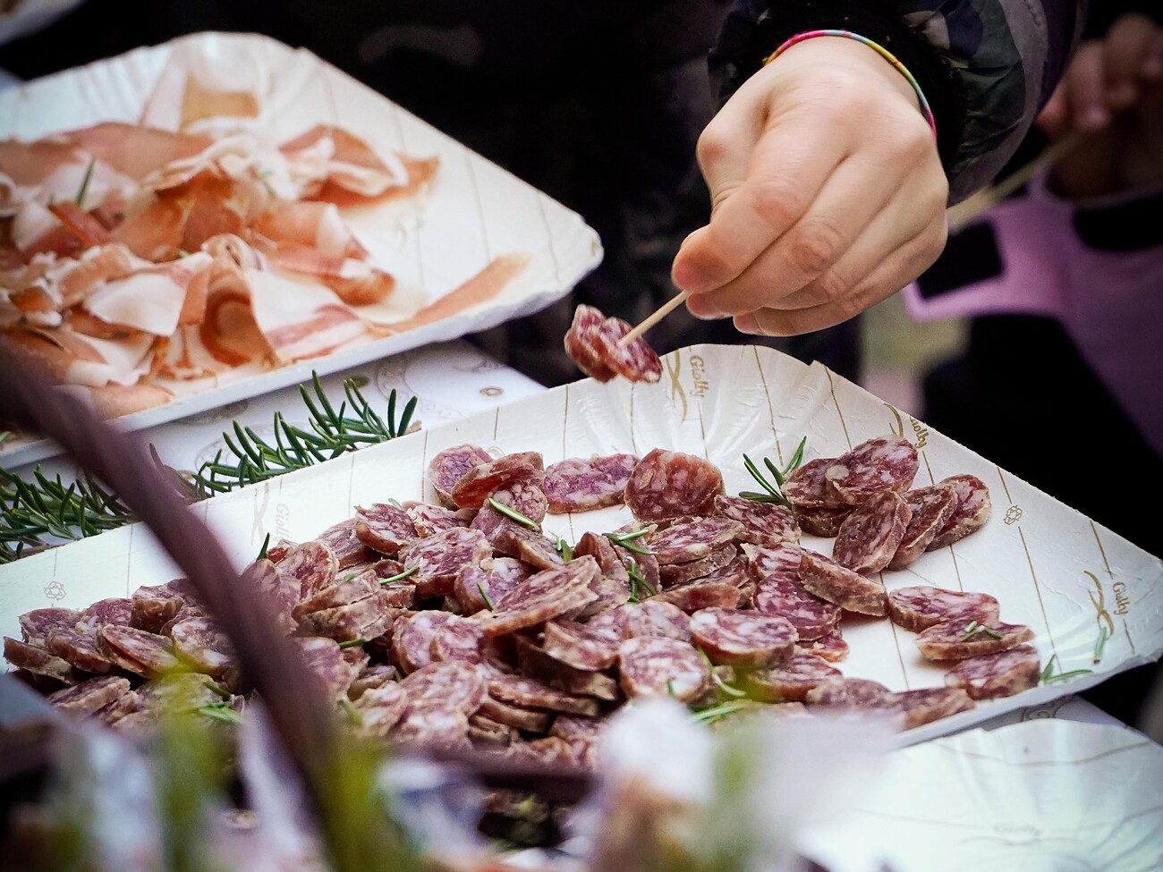 Dabei bietet sich den Gästen die Gelegenheit, im Anschluss an die Schlossführung, typische lokale Produkte zu verkosten, die von den Produzenten an Ständen im Schlosshof angeboten werden.