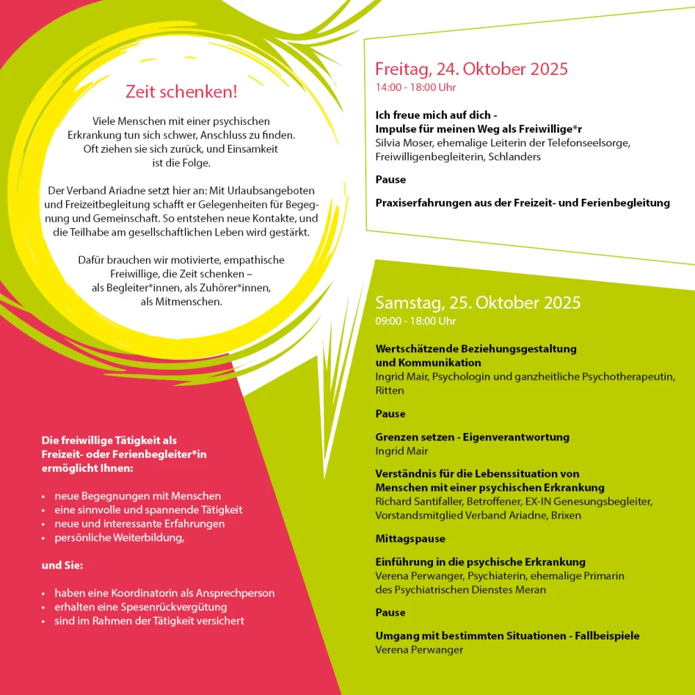 Der Verband Ariadne setzt hier an: Mit Urlaubsangeboten und Freizeitbegleitung schafft er Gelegenheiten für Begegnung und Gemeinschaft. So entstehen neue Kontakte, und die Teilhabe am gesellschaftlichen Leben wird gestärkt.