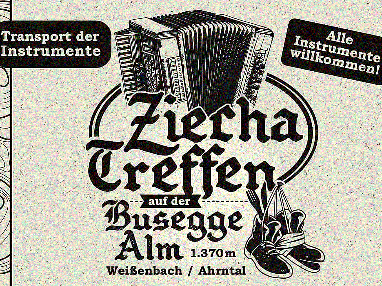 Ziecha Treffen auf der Busegge Alm in Weißenbach mit Grillspezialitäten und Darbietungen der Volkstanzgruppe Luttach des Mißebner Trios