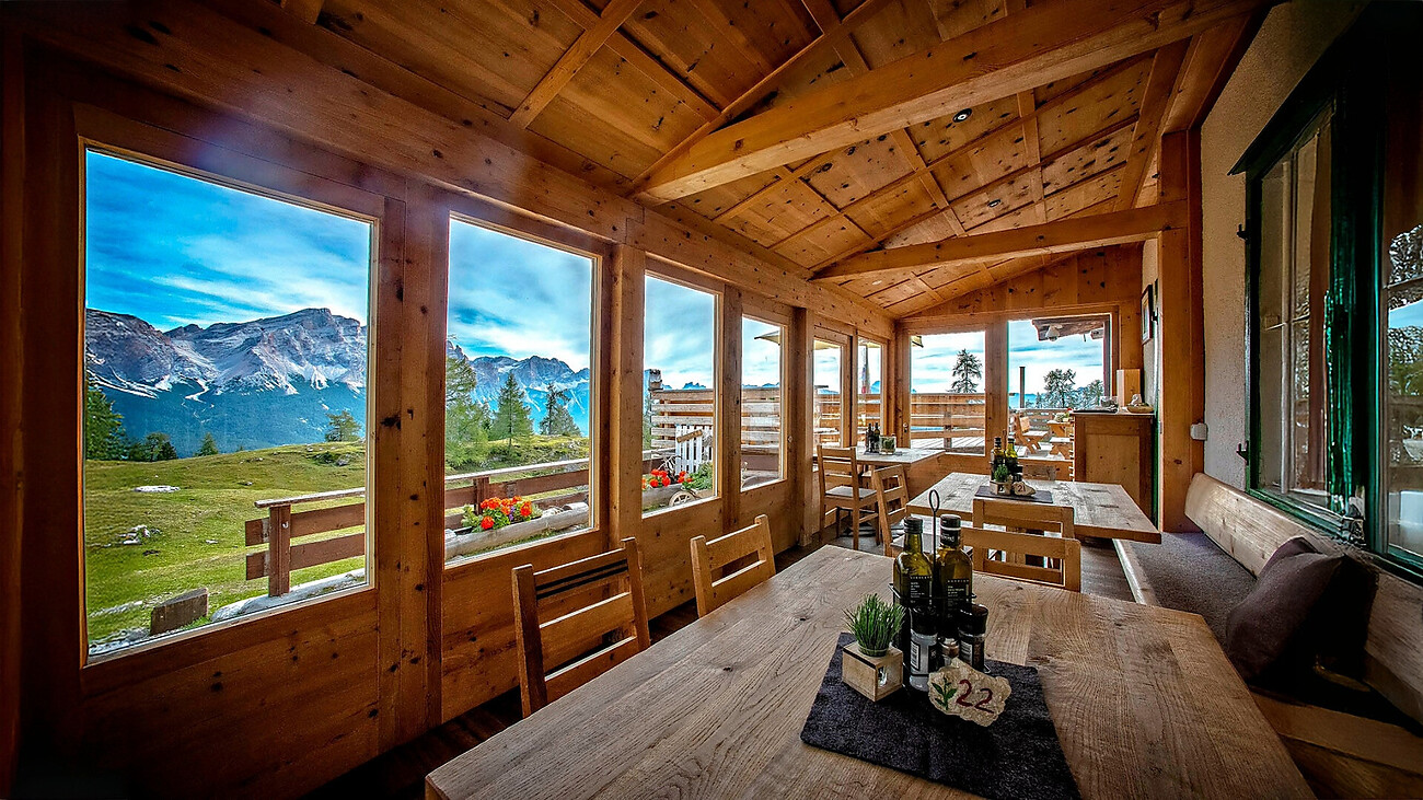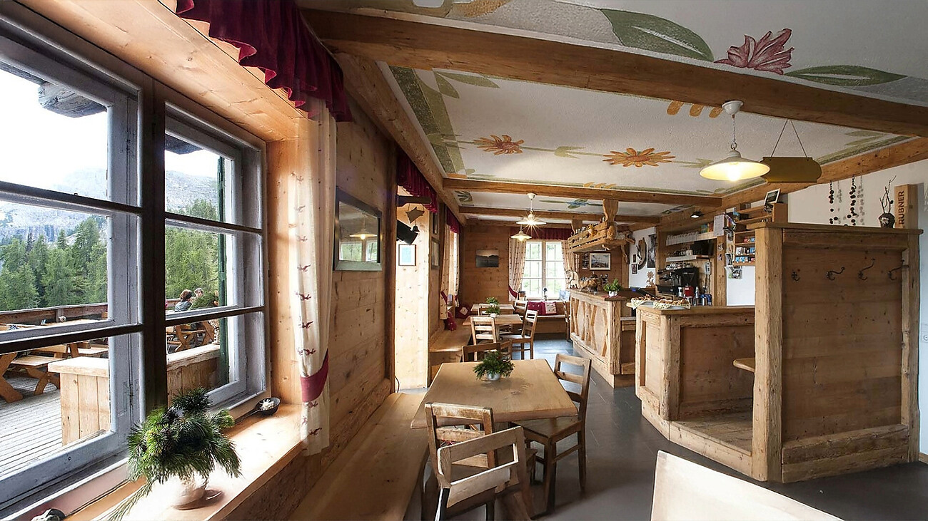 The Gardenacia mountain hut is located 2,050 metres above sea level. It can also be reached by the Gardenacia chairlift, with the walk taking about 40 minutes from there.
