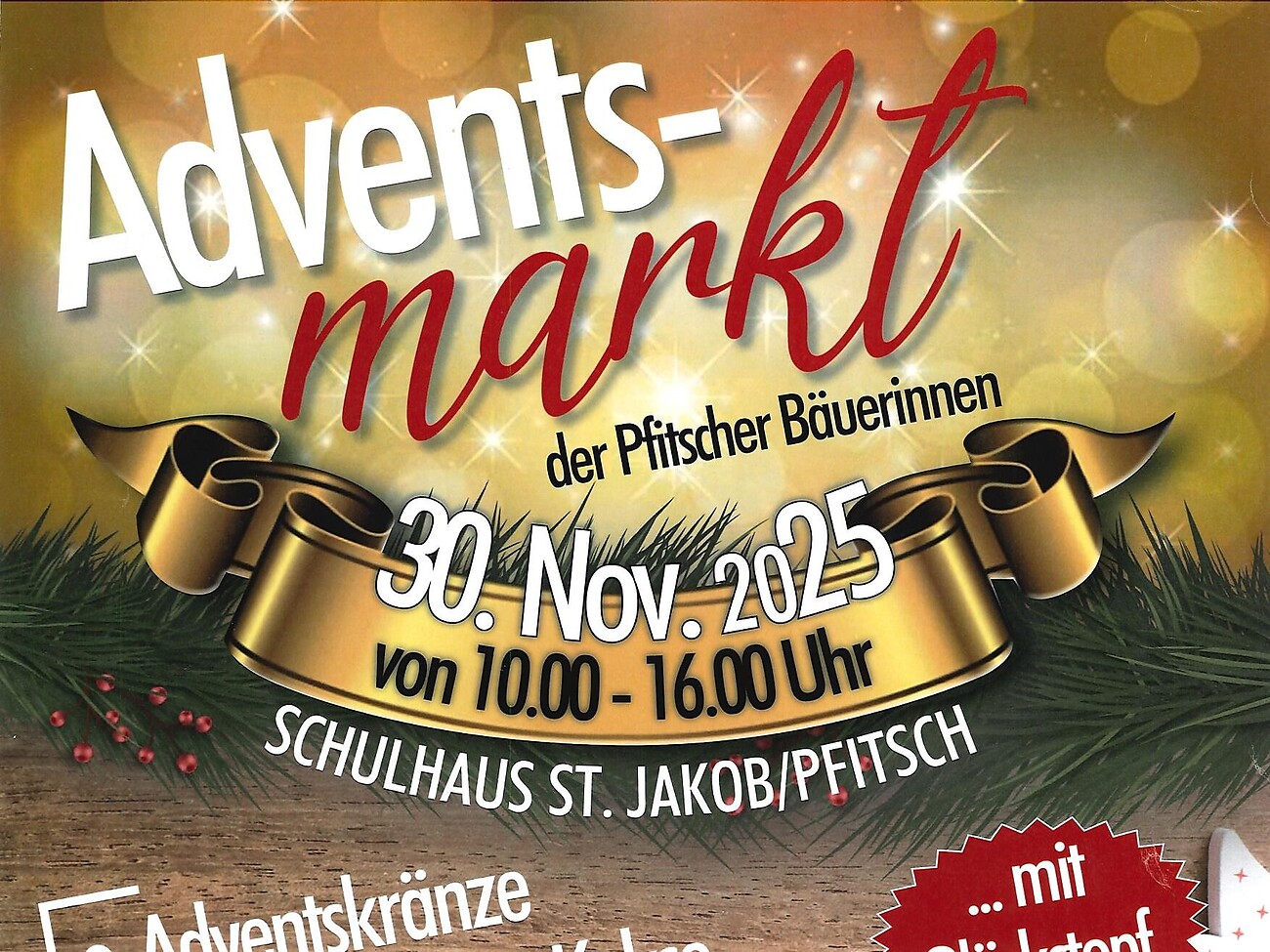There will be Advent wreaths, homemade biscuits, flower arrangements, gift ideas, Pfitscher doughnuts and much more.
