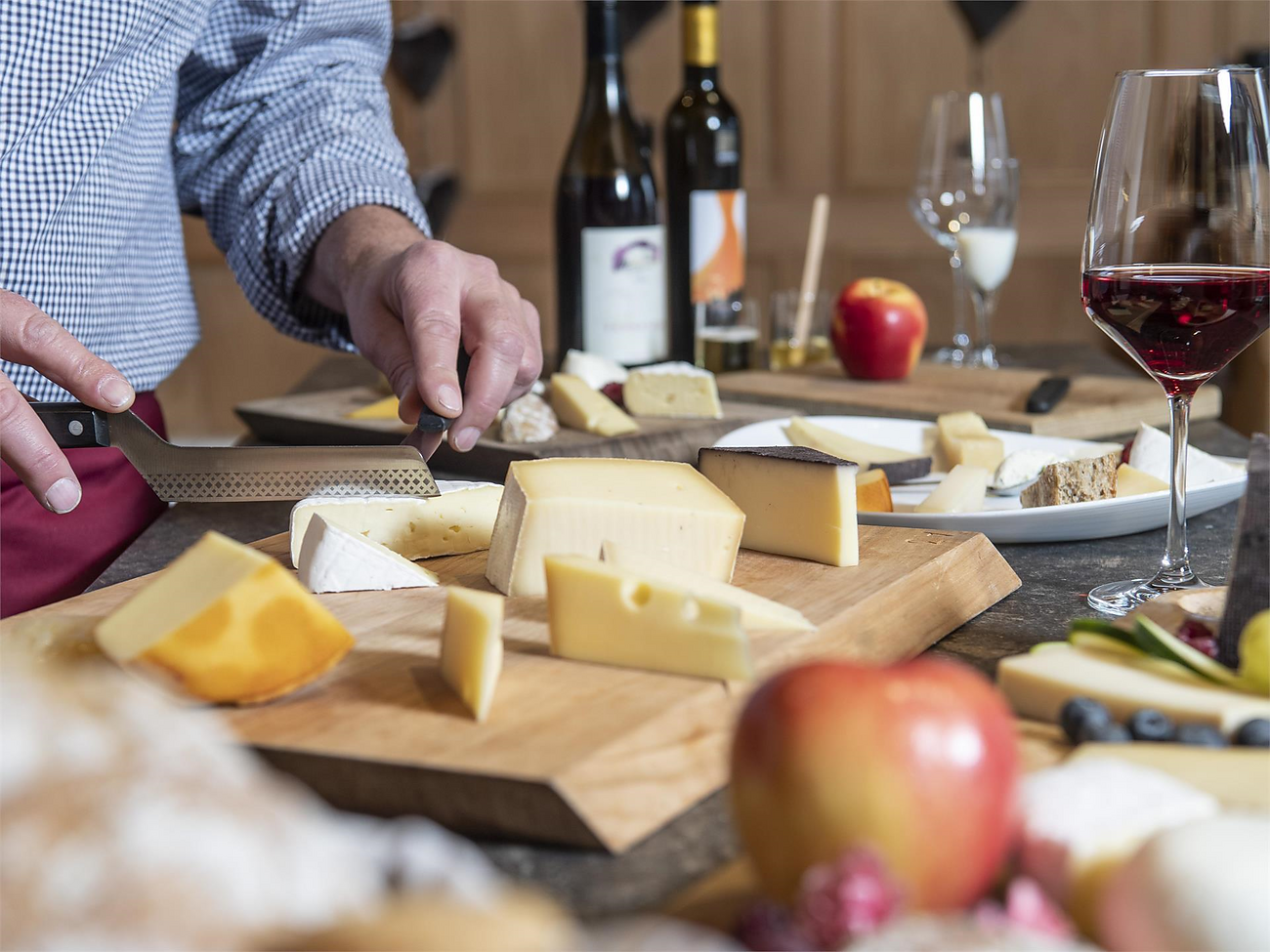 Um den Käse und seine Entstehung ranken sich verschiedene Legenden und Geschichten. Ob es wohl stimmt, dass einige Sorten nur per Zufall entdeckt wurden oder gar der Vergesslichkeit des Molkereimeisters zu verdanken sind? Einer, der sich damit auskennt und sein umfangreiches Wissen darüber gern teilt, ist Andreas Österreicher. Jeden Dienstag lädt der diplomierte Käsesommelier zur Verkostung in seinem Zuhause. Dabei gewährt er spannende Einblicke in die Südtiroler Käsewelt, zeigt, wie man Geschmacksnoten erkennt und treffend beschreibt, und erklärt, warum es sich auszahlt, beim Käsekauf in Herkunft und Qualität zu investieren. Und er verrät auch, wie man Käse richtig gut kombiniert. Mit Wein, Schokolade, Früchten oder Bier – die Harmonie muss stimmen. Da kann es sicher nicht schaden, dass Andreas als Musikant mit Harmonien bestens vertraut ist …