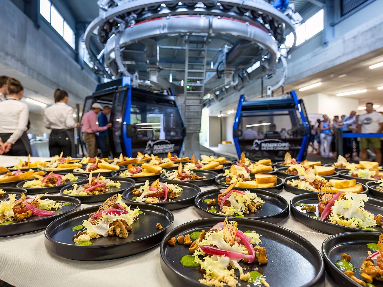 Guests will enjoy an exquisite six-course menu served during the ride, where city and mountain come together in an unexpectedly close and harmonious way. The evening begins at the valley station with an Italian aperitif, followed by an extraordinary dining experience served directly in the gondolas, high above the breathtaking mountain landscape with a view of the town of Sterzing. Culinary delights will be prepared by Restaurant Kolping, Restaurant zur Traube, Posthotel Lamm, and Stadthotel Schwarzer Adler. After dessert, an afterparty at Restaurant Biwak with a DJ will round off the evening.
