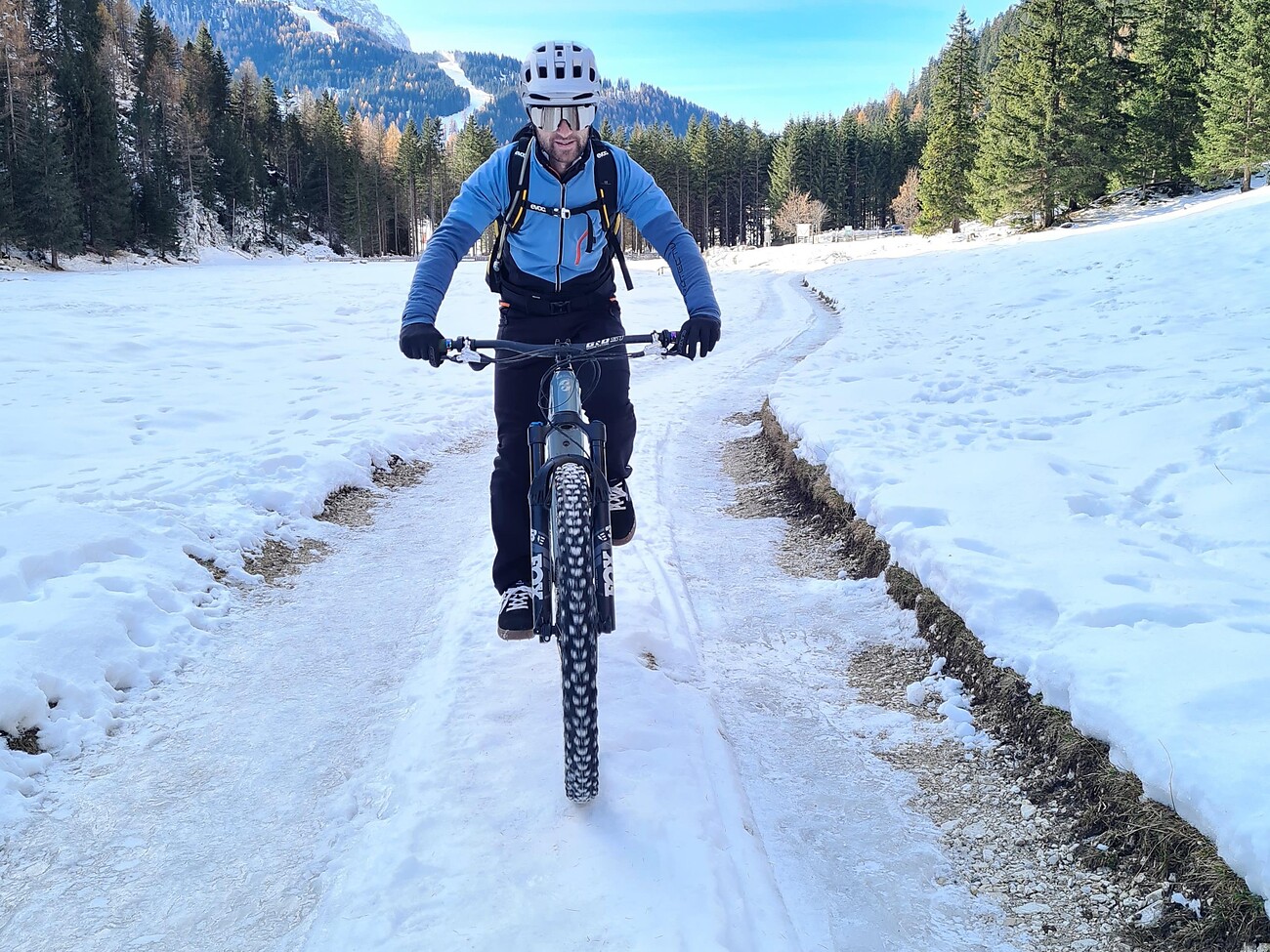Clothing and equipment: winter clothing, gloves, thin cap or headband to be worn under the helmet, the bike helmet is rented together with the bike.