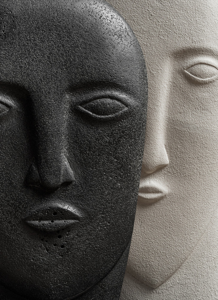 durch eine Materialvariation wie Basalt, Sandstein, Terrakotta und