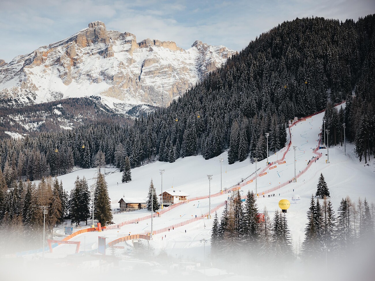 The unmissable spectacle of the men’s giant slalom taking place on the Gran Risa, in the heart of the spectacular Dolomite mountains.