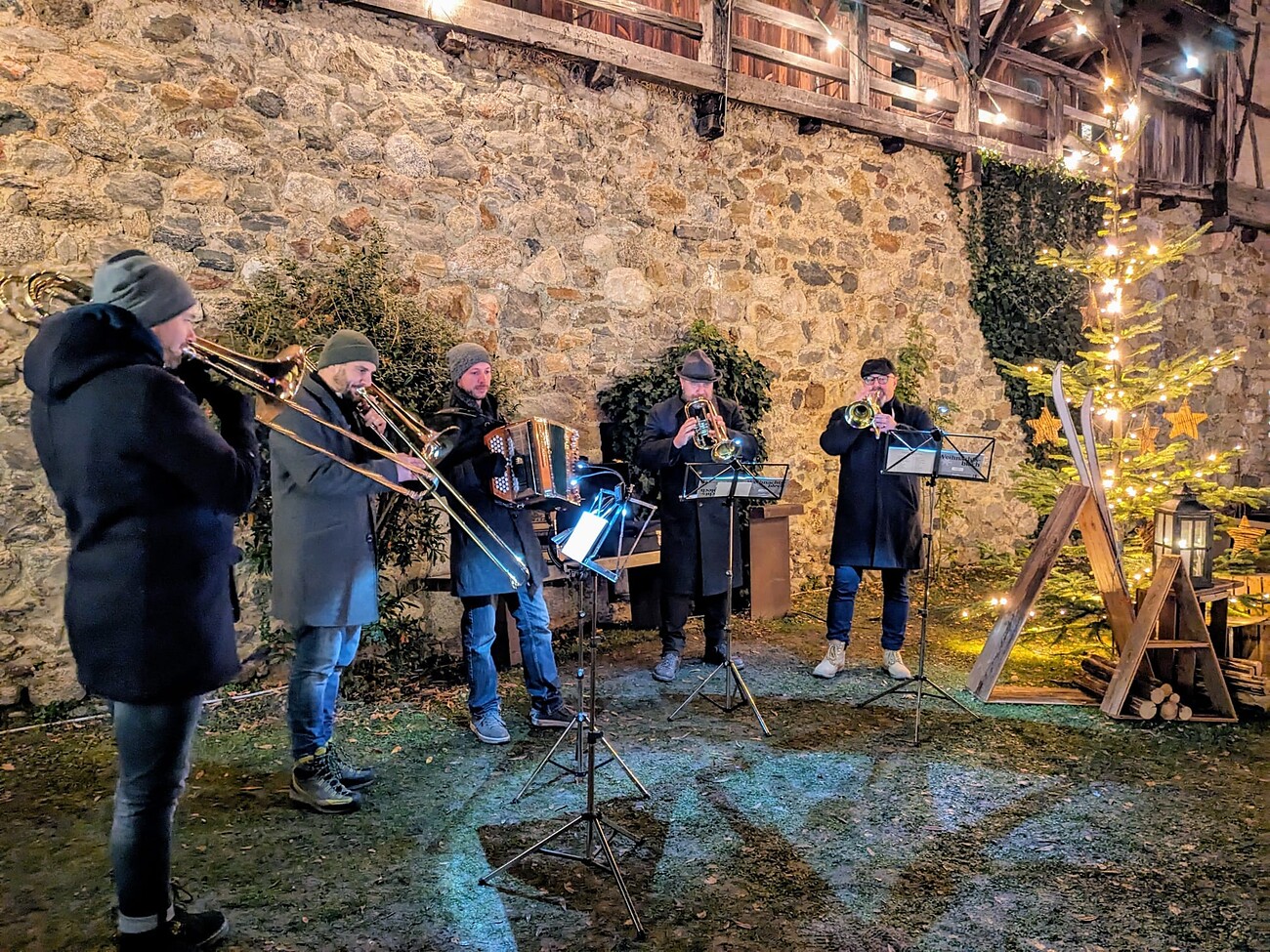On December 1st, the brass group "Brennet Liab" will bring beautiful sounds to the Christmas market in Algund. Look forward to beloved Christmas classics and traditional brass music – perfect for a peaceful afternoon at the Christmas market in Algund.