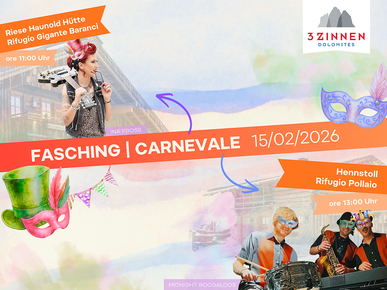 During Carnival, Rifugio Pollaio turns into a lively party location: from 1.00 pm, the Midnight Boogaloos provide great entertainment with live music. An afternoon full of good vibes, dancing and joyful Carnival spirit.