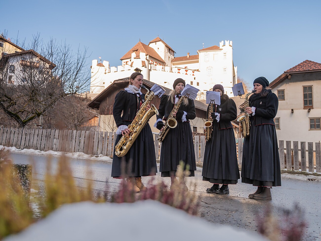 Small groups of musicians from the music band Kiens/chienes enchant the streets of the 5 villages with their Christmas spirit and bring contemplative Christmas wishes.