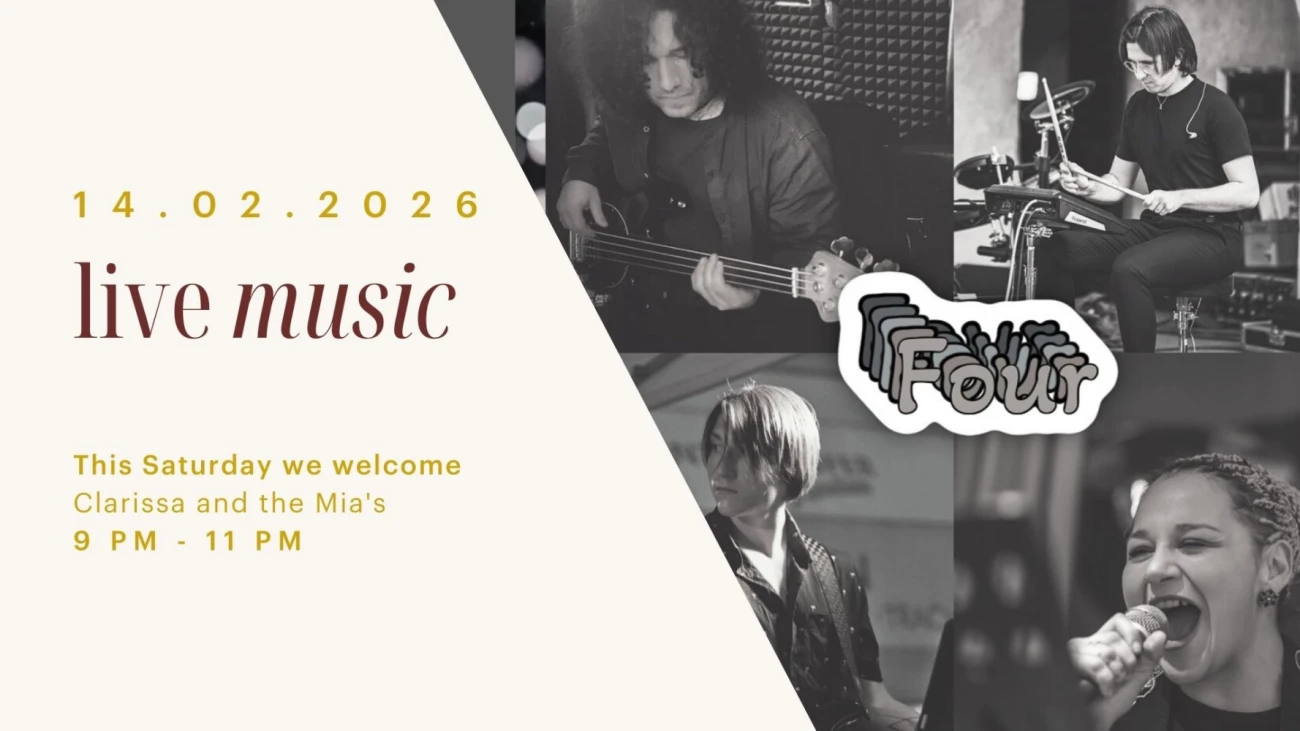 Four ist eine explosive Band, die jeden Abend in eine unvergessliche Party verwandelt. Vom Jazz über Pop, von Disco bis Rock – ihr Repertoire ist eine mitreißende Mischung aus Klassikern und Hits. Groove und Energie sorgen für einen packenden und zugleich eleganten Live-Auftritt – perfekt für eine Valentinsnacht voller Atmosphäre und Emotionen.