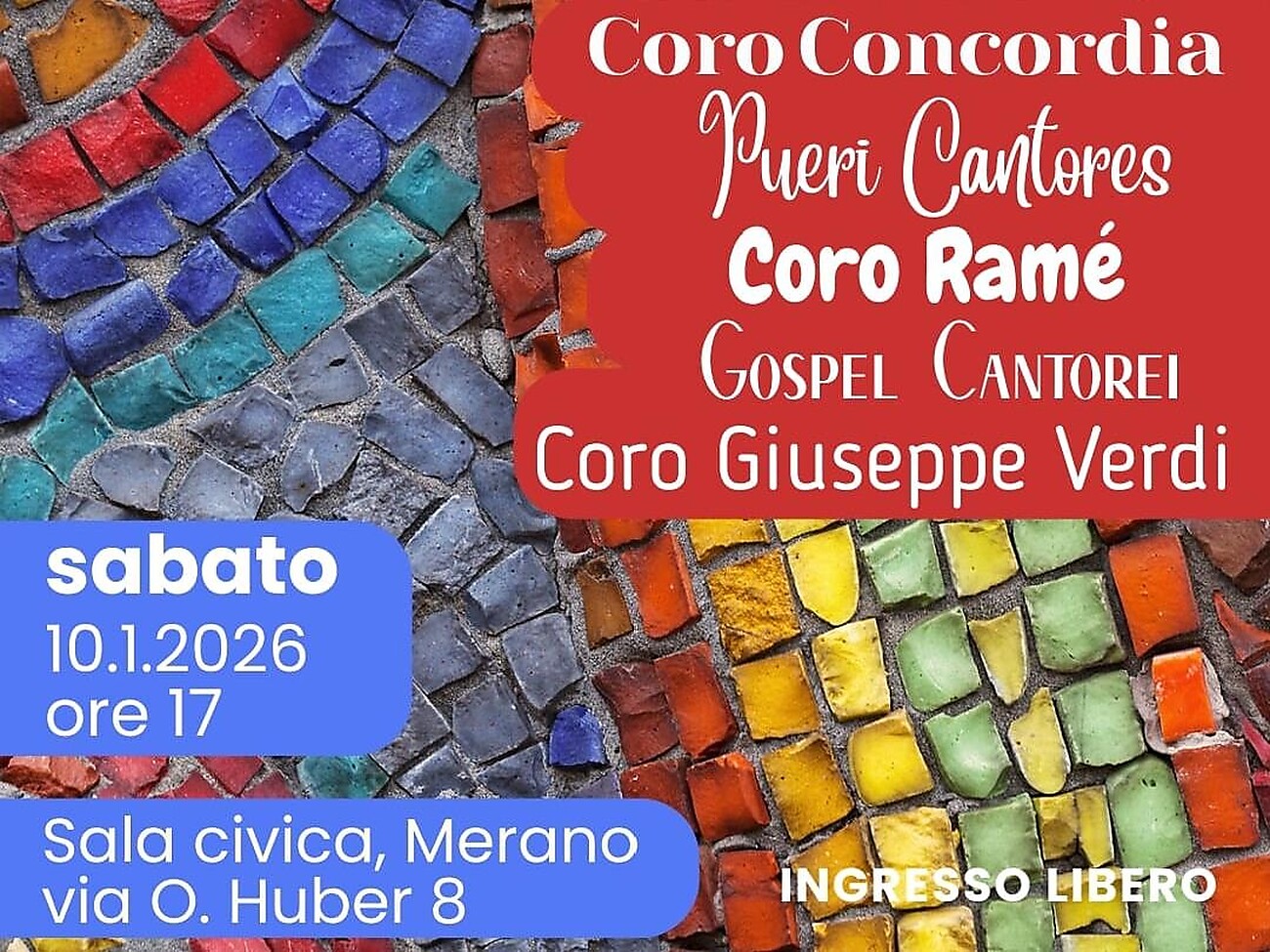 Five choirs with different musical styles will perform: Coro Concordia, Pueri Cantores, Coro Ramé, Gospel Cantorei and Coro Giuseppe Verdi.