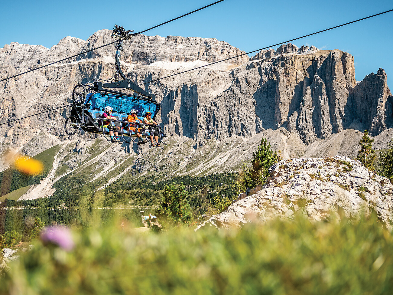 Following the Sella Ronda MTB Tour Anti-Clockwise there is a total height difference of about 1.020 m to be cycled uphill and several descents through single trails or forest roads. Therefore it is more suited to those who enjoy cycling uphill on your MTB or e-bike. The time needed to complete the tour varies according the ability of the biker: from a minimum 7 to a maximum of 8 hours, with a lunch break included.
