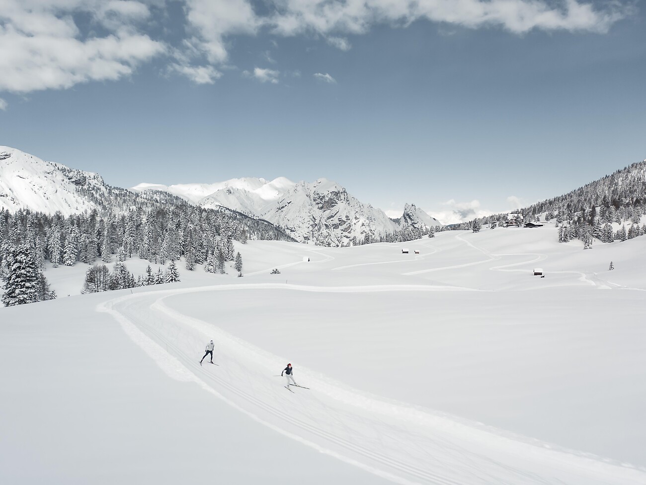 Dolomiti Nordicski is the biggest cross-country skiing carousel in Europe with 10 cross-country skiing regions in the heart of the Dolomites and about 1,300 km of tracks offering unique skiing fun.