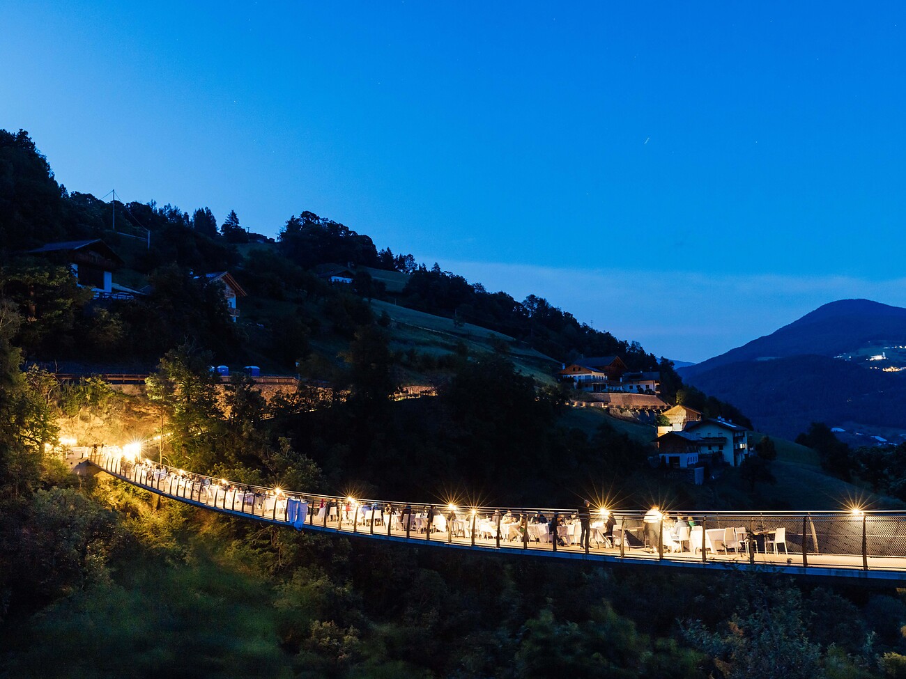 Special culinary delights on the 55 m high suspension bridge with panoramic view at the Barbian waterfalls and the Eisacktal Valley.