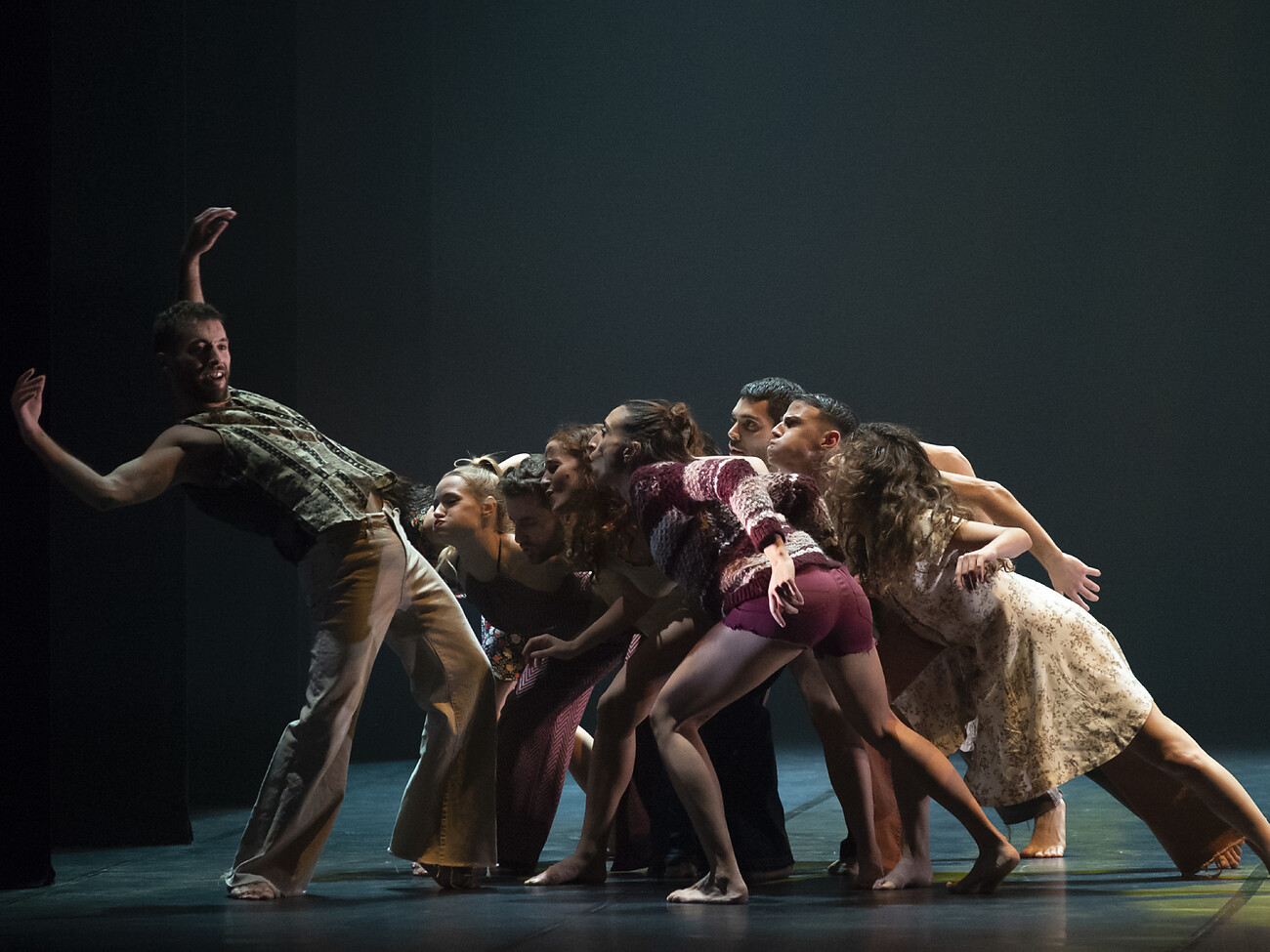BALLADE is the tale of an era, or rather two. A diptych, between autobiography and desire for care, loneliness and spirit of community: the present day with its bewilderments is the focus of Elegia by Morelli, while the 1970s and 1980s are portrayed in the choreography that gives the entire show its name, Ballade by Bigonzetti. The pieces accompany the audience on a journey between different generations. Bigonzetti's choreography is sewn onto a musical dramaturgy that draws on Prince, Frank Zappa, Leonard Cohen and the CCCP and is inspired by one of the most significant literary voices of the time, that of Pier Vittorio Tondelli. Morelli's Elegy was born around Frédéric Chopin. Within and in opposition to the music, the eight bodies of dancers seem to want to go beyond themselves in search of the care of the other. Tears of poems by Mariangela Gualtieri approach this fragile and hesitant humanity not devoid of impulses of the soul.