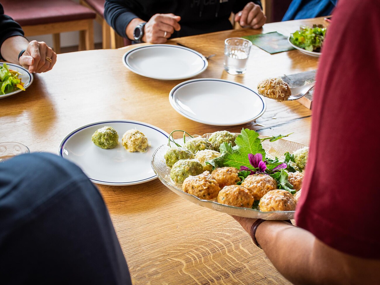 Anna-Maria from the Kronlechnerhof farm is a farmer with passion. On her farm in Welschnofen | Nova Levante there are various animals and in summer she has a colourful garden with all types of vegetables and fruits. After a short tour of the farm we cook together various types of dumplings and Krapfen (sweet doughnuts) with the farm products. Finally, we taste together the dumplings and the Krapfen. All participants will receive the recipes of the South Tyrolean specialities to take home.