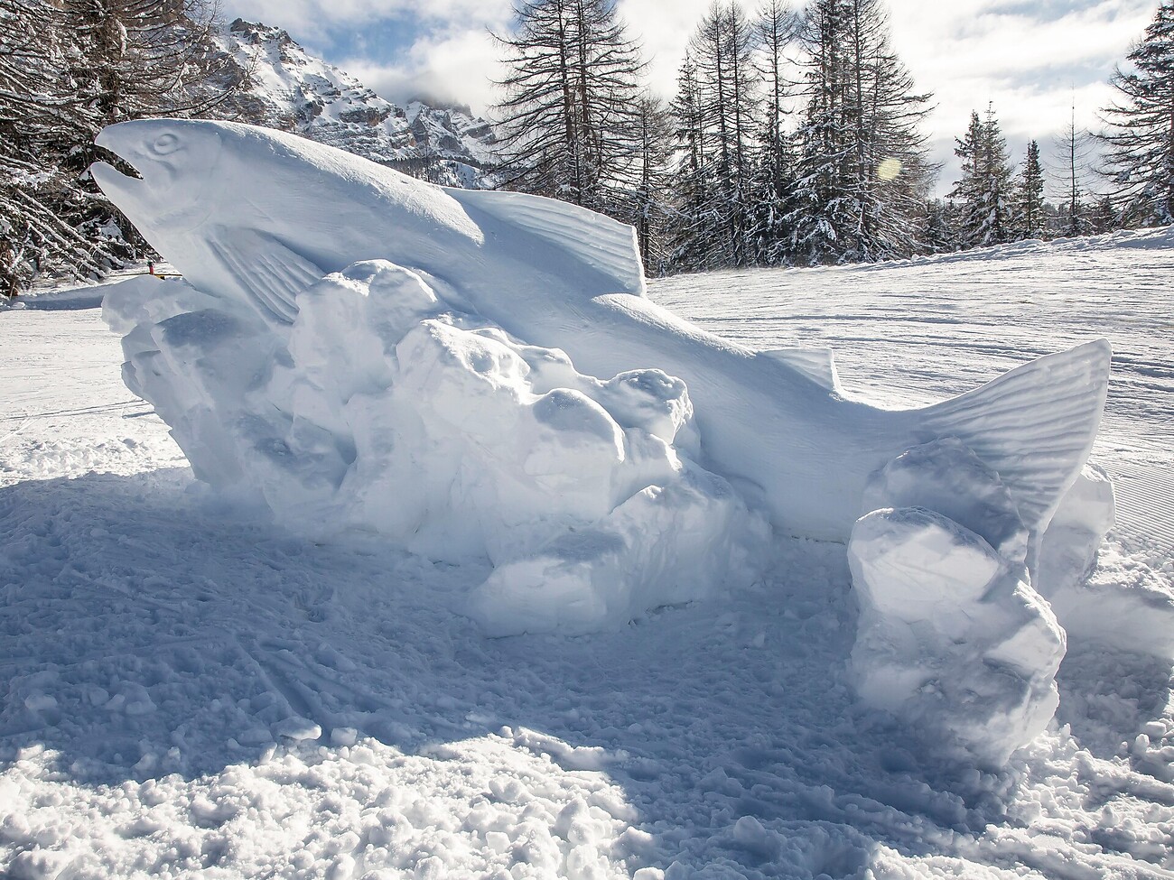 Students and former students of the Cademia Art School in Ortisei transform snow into art, inspired by the theme of the competition: the Ladins, the people of the Dolomites.