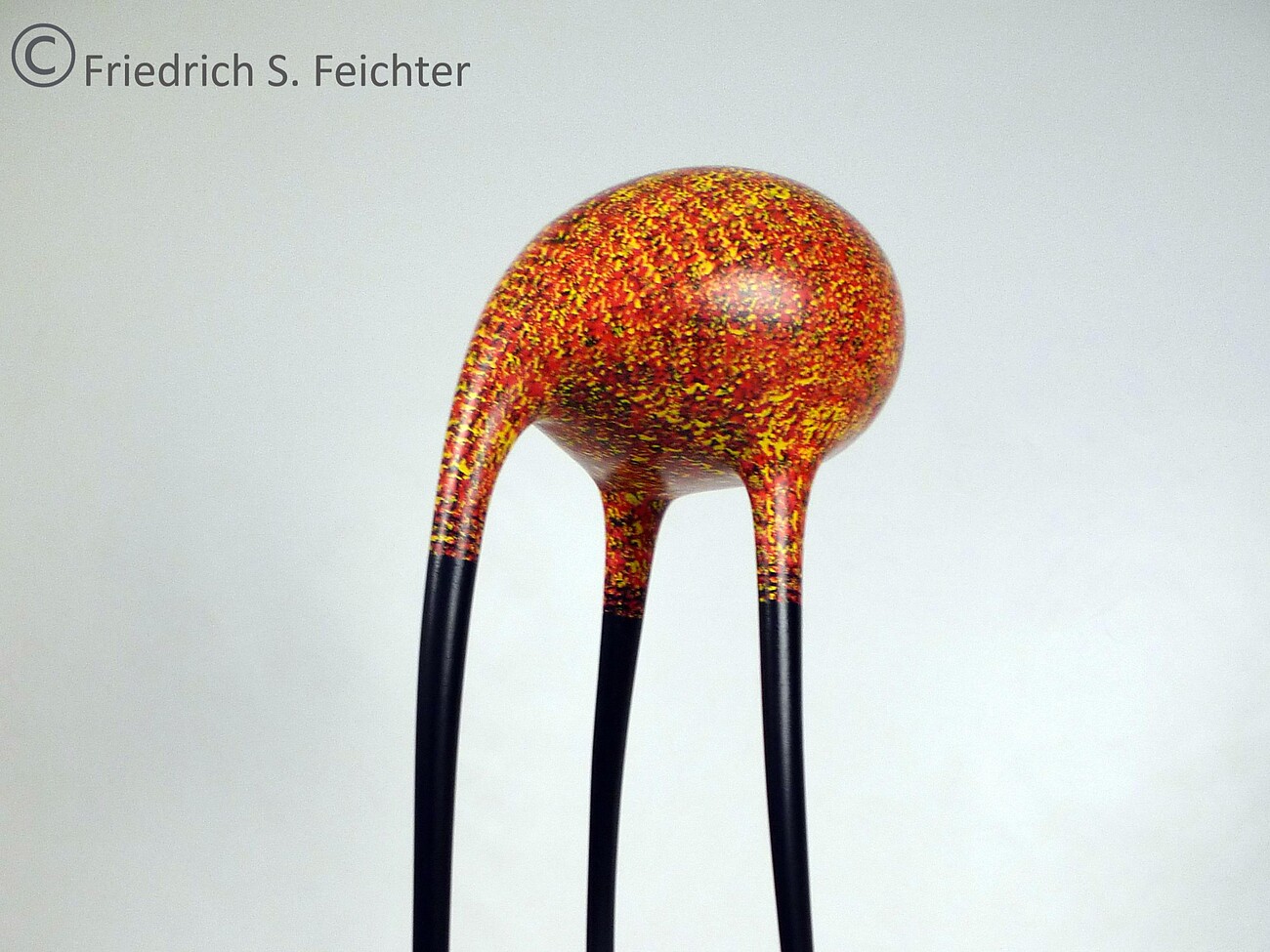It was in Autumn 1996 that I had a dream in which I was surrounded by creatures with round shaped bodies and long legs. It almost appeared as if they would hover above the ground. I immediately felt a strong source of power which came from their colorful but almost transparent bodies. As soon as I started to communicate with them, I realized that the answers I received was not in words but rather a reflection of waves and currents that I seemed to comprehend. I was shaken by a sudden spurt of happiness but shortly after I woke up. I started to immediately recreate the memory of these wonderful creatures in my Art Workshop and the result can be seen at my exhibition. I made several other encounters with the creatures in my dreams, and I am meanwhile certain that they are of human nature in a different shape. // F.S.F