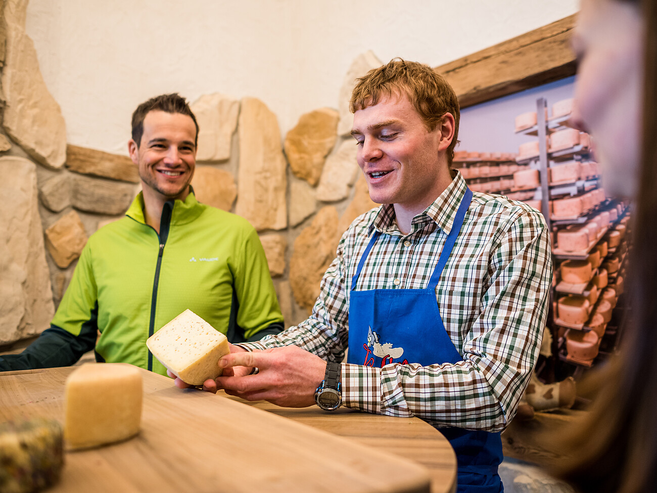 An easy route, suitable for everyone, leads first to the picturesque Vallunga, where just before the St. Sylvester’s Chapel branches off a Way of the Cross, which leads to the sunny area of Daunëi. Here the view is very postcard-like: you can admire the village of Selva di Val Gardena and the huge Sella massif. Afterwards, a tasting of homemade cheese takes place at the Valin farm: delicious and local.