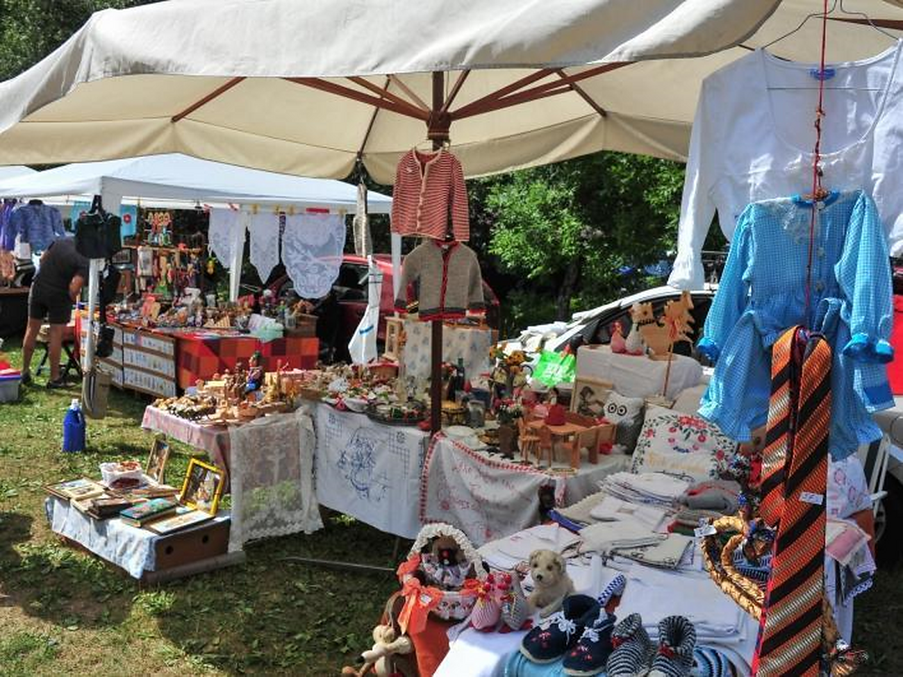 Die Flohmarkt-Besucher können in alle Ruhe bummeln und nach Schnäppchen stöbern. Der Flohmarkt befindet sich auf der Fleimstalerstaße in der Fraktion San Lugano der Gemeinde Truden im Naturpark.