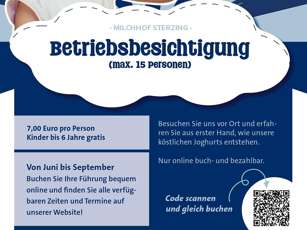 Buchen Sie Ihre Führung bequem online und finden Sie alle verfügbaren Zeiten und Termine auf unserer Website: www.milchhof-sterzing.it