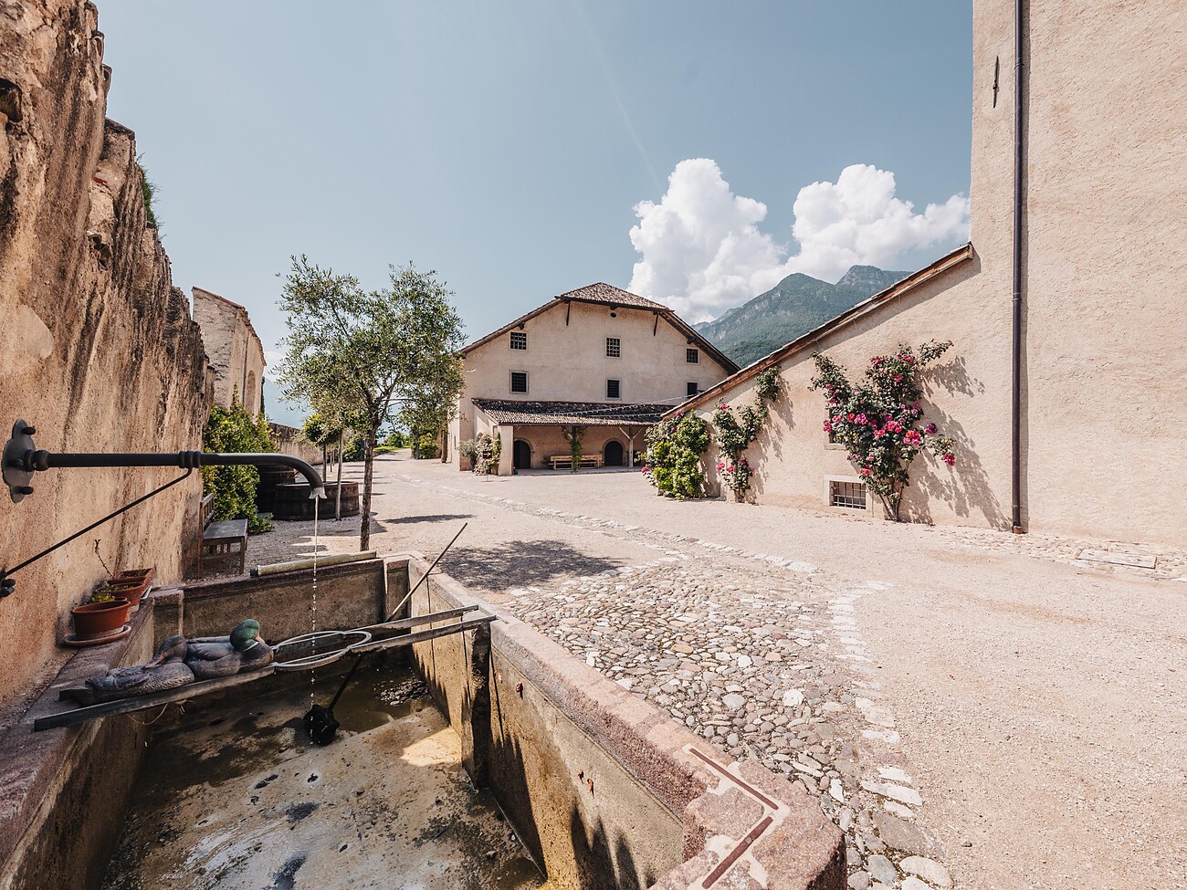 Beim Rundgang hinter die gezinnten Ringmauern des Anwesens können die angebauten Trauben und Früchte besichtigt werden. Anschließend erhalten die Teilnehmer:innen Einblick in den Reifekeller und die Schaubrennerei. Hier wird nicht nur Wissenswertes zur Brennereikunst serviert, sondern auch verschiedene Kostproben der hergestellten Produkte. Zur Verkostung wird eine passende „Marende“ kredenzt mit ausgewählten regionalen Köstlichkeiten.