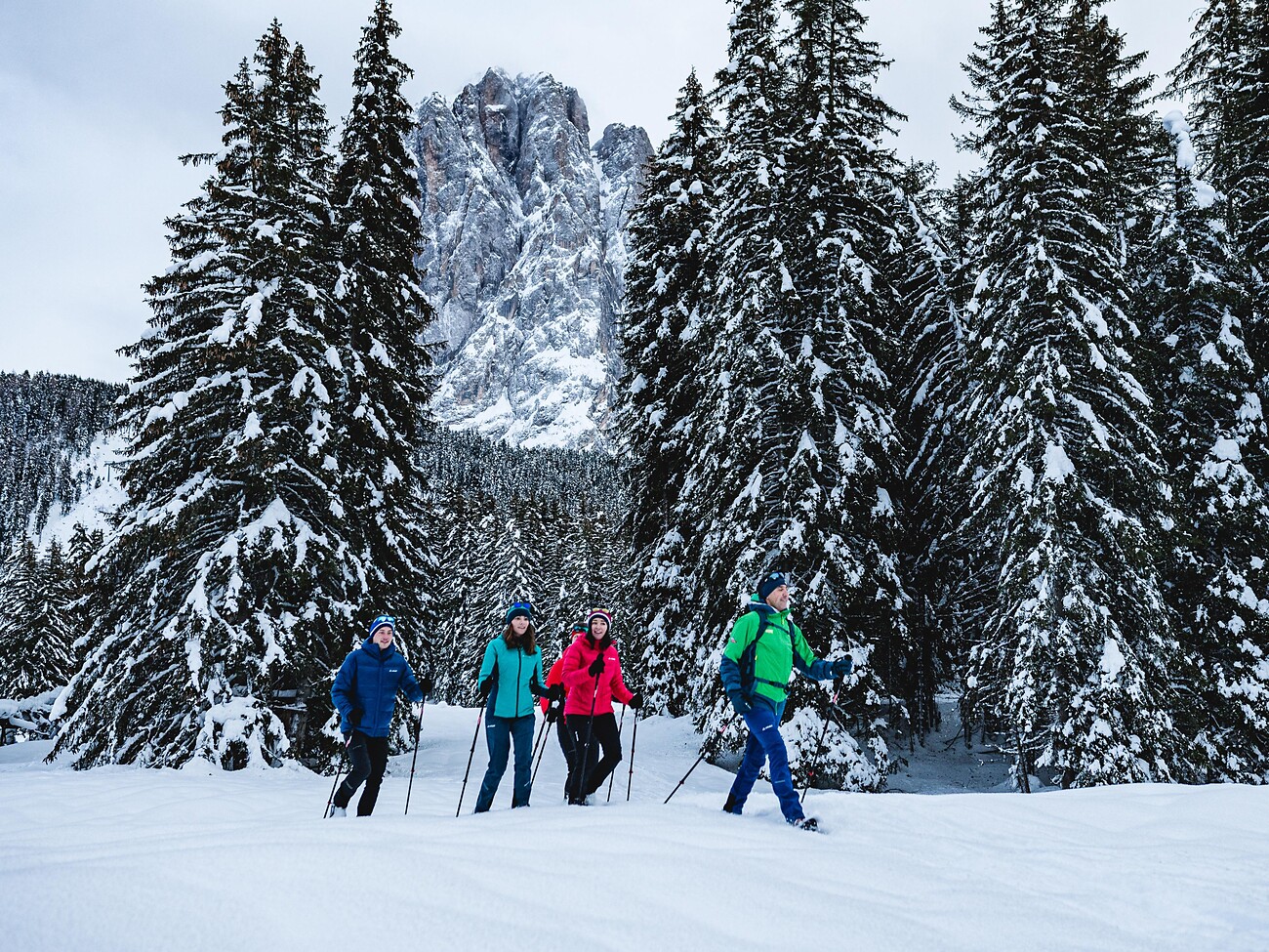 Discover the most enchanting side of winter during the guided hike to Mont Sëura. Accompanied by a local guide, you walk from Monte Pana to reach the quiet Mont Sëura alpine pasture at the foot of the Sassolungo. The spectacular view of the majestic Dolomite peaks follows you along the way. The chairlift takes you back to Monte Pana.