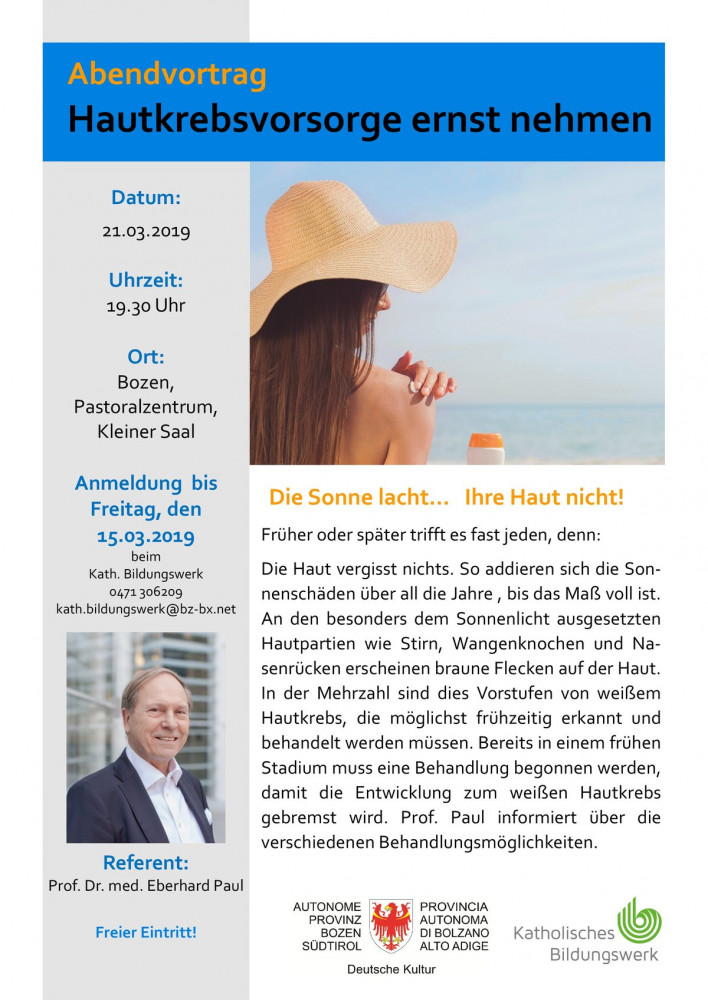 An den besonders dem Sonnenlicht ausgesetzten Hautpartien wie Stirn, Wangenknochen und Nasenrücken erscheinen braune Flecken auf der Haut. In der Mehrzahl sind dies Vorstufen von weißem Hautkrebs, die möglichst frühzeitig erkannt und behandelt werden müssen. Bereits in einem frühen Stadium muss eine Behandlung begonnen werden, damit die Entwicklung zum weißen Hautkrebs gebremst wird. Prof. Dr. med. Eberhard Paul informiert über die verschiedenen Behandlungsmöglichkeiten.