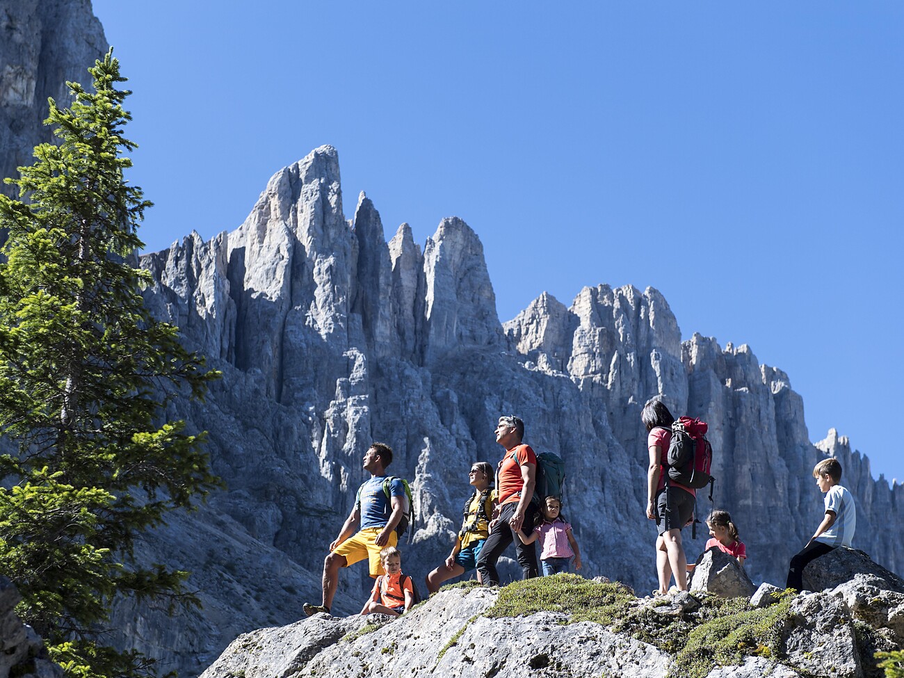 The day hike starts at the Passo Costalunga and leads into the rock labyrinth beneath the Latemar mountain. The mystical labyrinth invites you to discover special stone formations, leads you up stone steps through rock gates and forces you to climb through this wonderful rocky landscape. Return to Nova Levante by public bus.