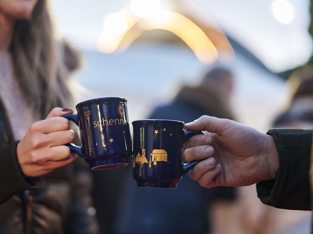 A food stall offers warming drinks and snacks.
