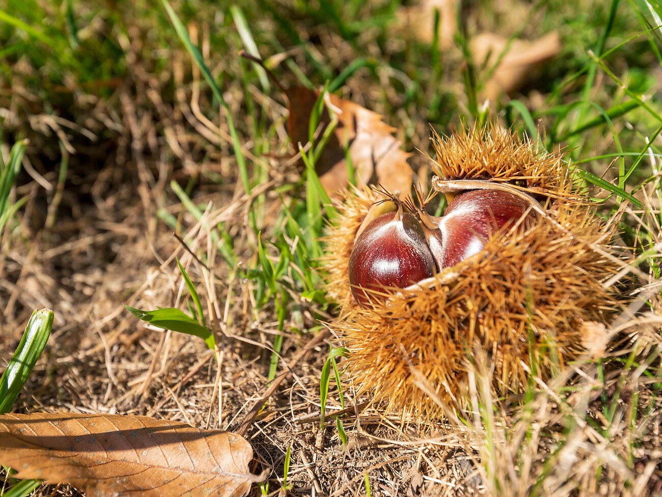 Kastanienbauern und Törggelebetriebe braten im Monat Oktober entlang der Wanderwege Kastanien.