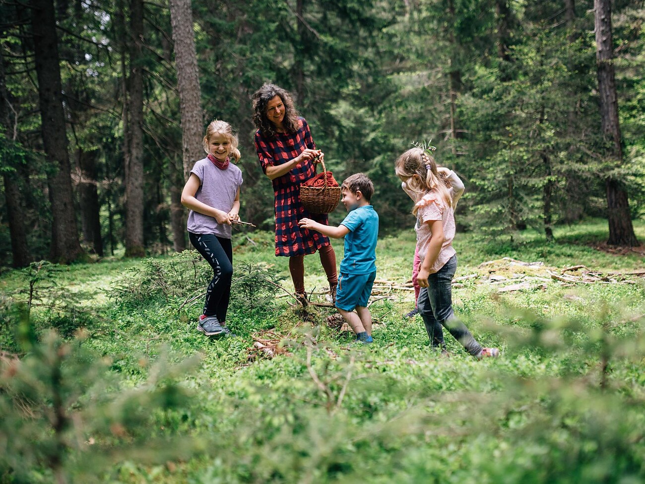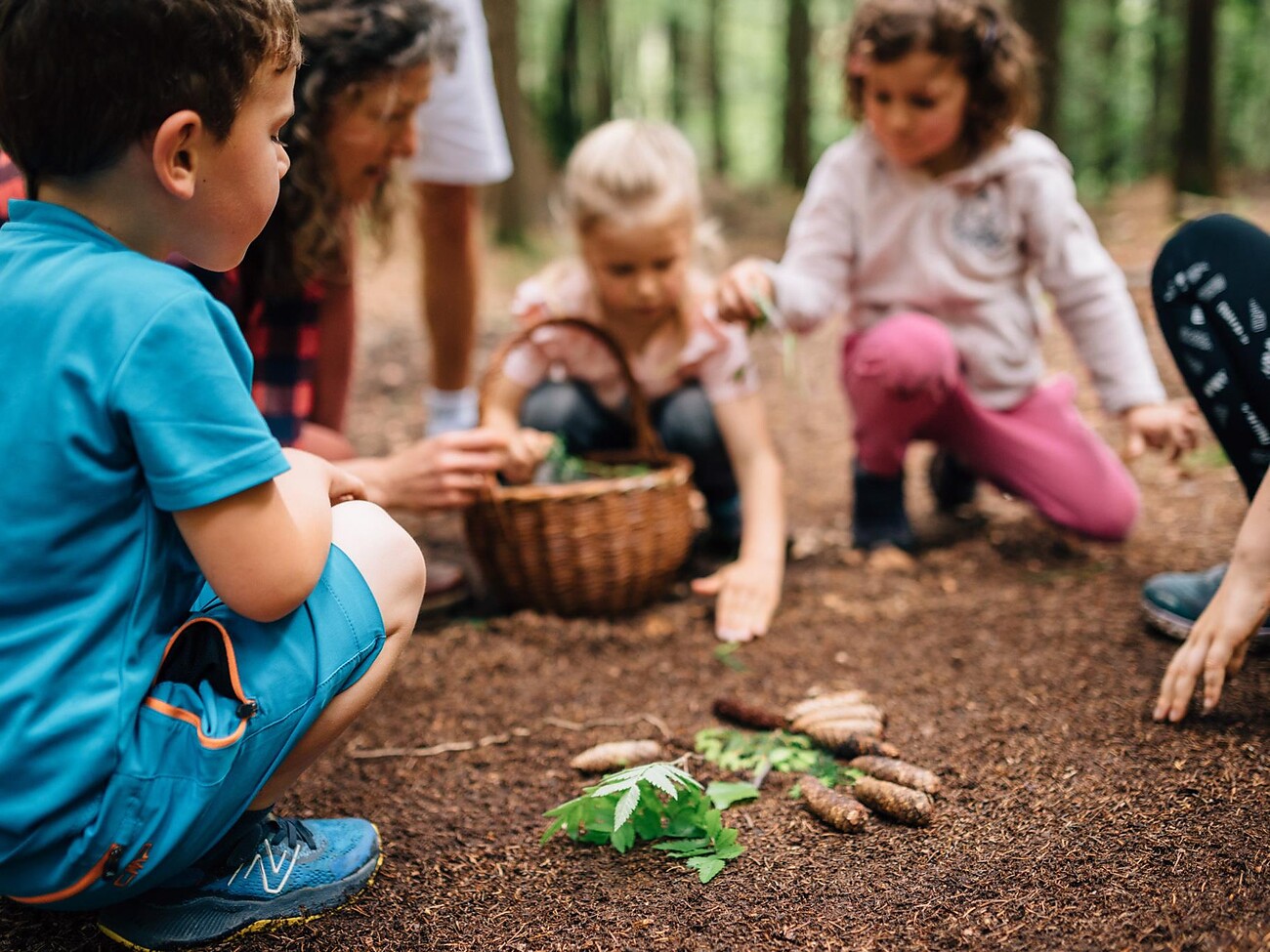 Open your eyes! Open your ears! Off we go into the forest to explore with all our senses. We look around, maybe we'll find something edible? Wild strawberries, wild herbs, mushrooms ... We play nature memory, build our farm with branches and moss. We do obstacle courses, balance over tree trunks or build a marble run. Fun games of tag are also on the programme.